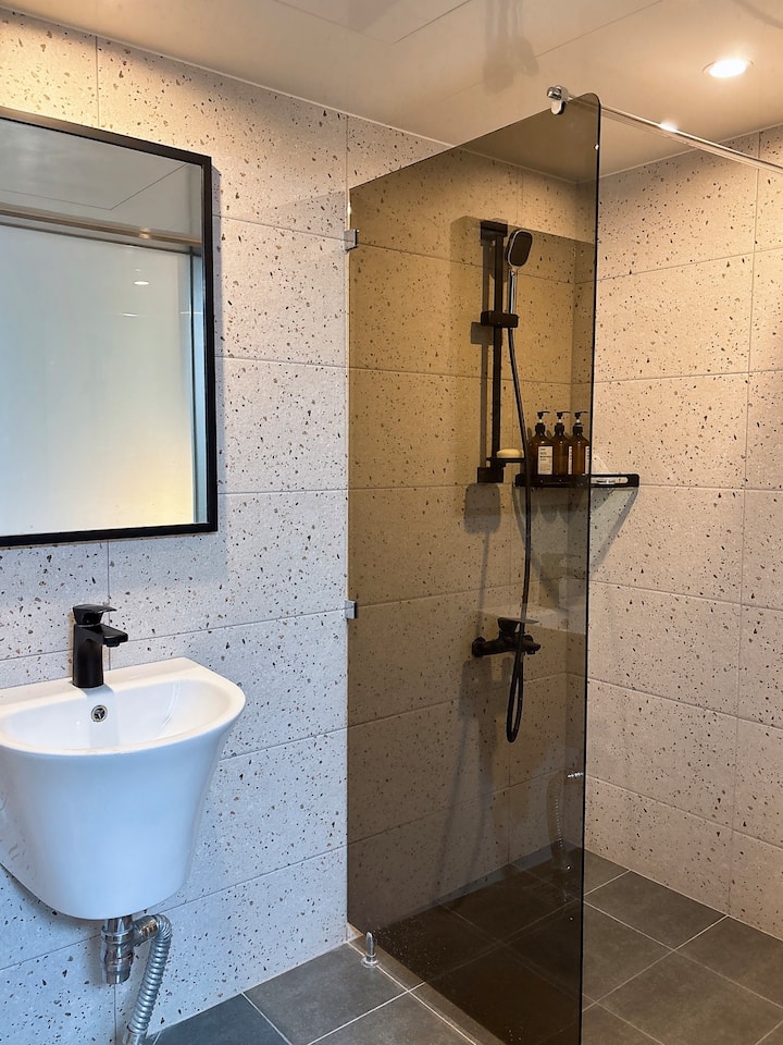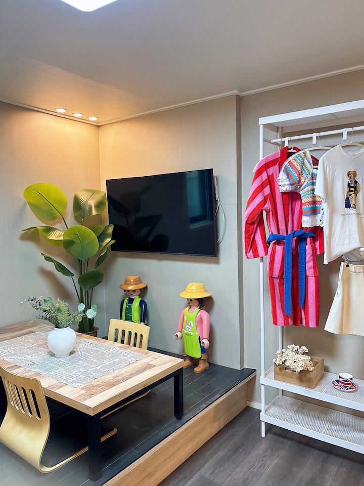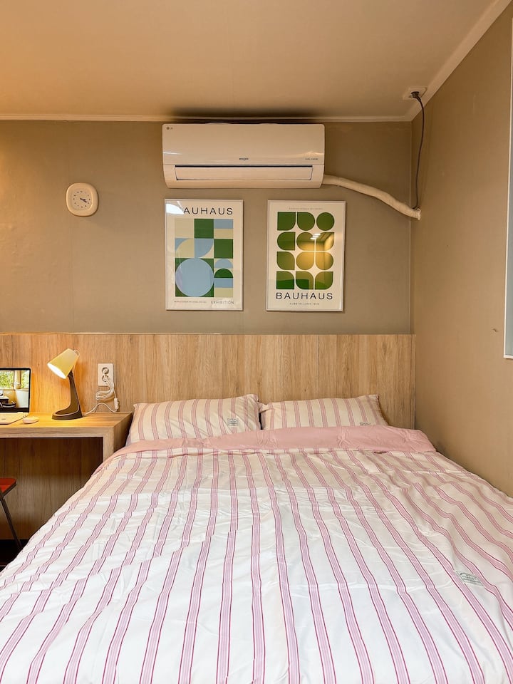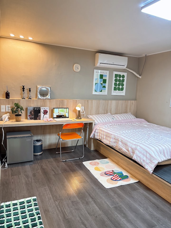 Habitación 611. #Nueva apertura, amplio espacio con cama queen, interior moderno, a 3 minutos de la estación de Suwon City Hall