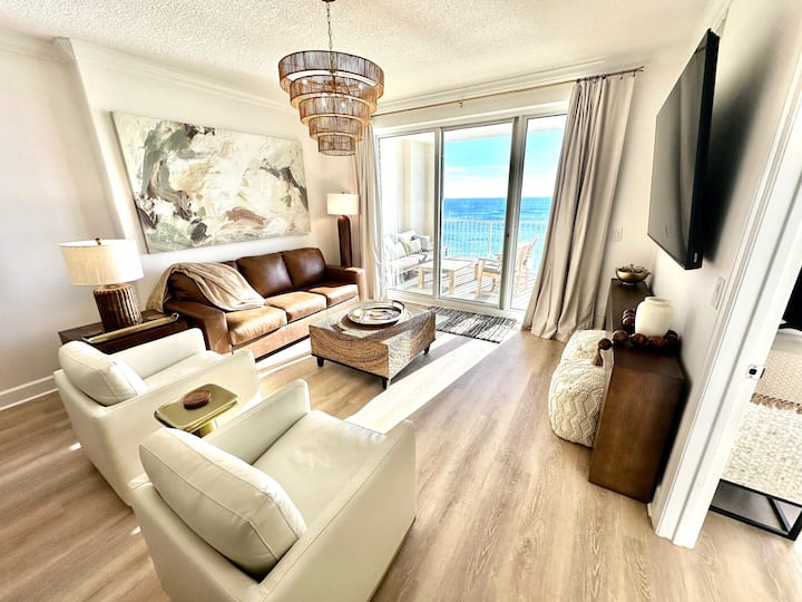 ¡Te damos la bienvenida a nuestro condominio Ocean Reef 1002 frente a la playa! Situado directamente en la playa, nuestro condominio es un alquiler vacacional completamente remodelado (noviembre de 2025), moderno, costero, de 2 dormitorios y 2 baños. Está ubicado en el décimo piso bajo, a la altura justa para disfrutar de las vistas del golfo, escuchar las olas, ver delfines, tortugas marinas o manatíes nadando, o para disfrutar viendo a tu familia o invitados disfrutar de la playa de abajo. No es demasiado alto ni demasiado bajo. ¡No dejes que la falta de reseñas sobre esta propiedad te preocupe! Antes de ahora, nunca se había alquilado y te está esperando. ¡Reserva nuestro apartamento y disfruta de unas vacaciones fabulosas, relajantes y divertidas en la playa! ¡Te encantará!