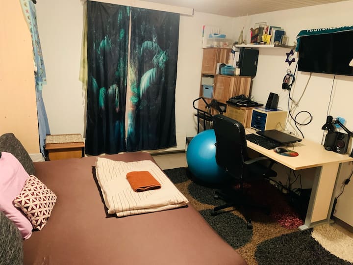 Una habitación solo para ti en un alojamiento, con acceso a áreas compartidas.