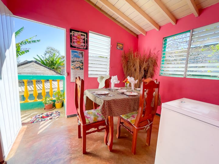 Soy una persona alegre que esta esperando con ganas el momento de hospedar a alguien en mi casa. Mi casa es un lugar agradable que me gusta compartir. Soy atenta y comparto mi tiempo con mis huespedes. Ellos van a llegar a mi casa como clientes y extraños pero mi unico objetivo es lograr un ambiente de familiaridad que simule el de sus propias casas. Ofertamos diferentes servicios muy convenientes con el lugar, tour con guía por el entorno campestre, plantaciones de tabaco, cuevas y Mogotes, tour a caballo, alquiler de bicicletas, alquiler de taxis a cualquier lugar y lo más importante, se presta la ayuda pertinente y que sea necesaria para una buena y feliz estancia del cliente.