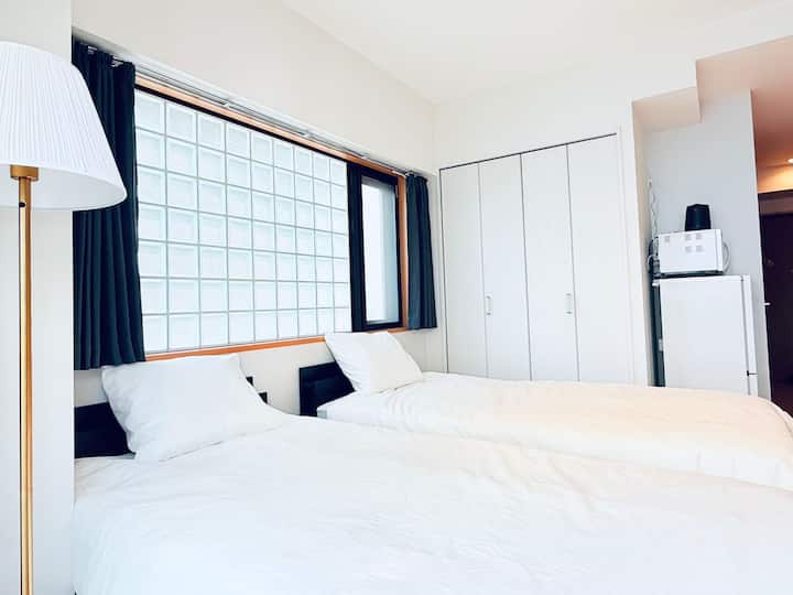 Esta es una habitación sencilla y funcional de tipo 1K ubicada en la zona de Yoyogi.Puede alojar hasta 2 personas, y hay 2 camas individuales de 100 cm.La cocina está totalmente equipada con artículos de primera necesidad, como una cocina de gas, utensilios de cocina, nevera y hervidor eléctrico, y puedes cocinar tus propias comidas.El baño y el inodoro están separados, y puedes relajarte y aliviar la fatiga del viaje en el baño con una bañera.También hay WiFi gratuito y una lavadora, por lo que es ideal para estadías cortas, medianas y largas.El acceso a la estación de Yoyogi y a la estación de Shinjuku también es bueno, por lo que es una ubicación conveniente tanto para lugares de interés como para negocios.Disfruta de una estancia cómoda en Tokio en un espacio limpio y tranquilo.