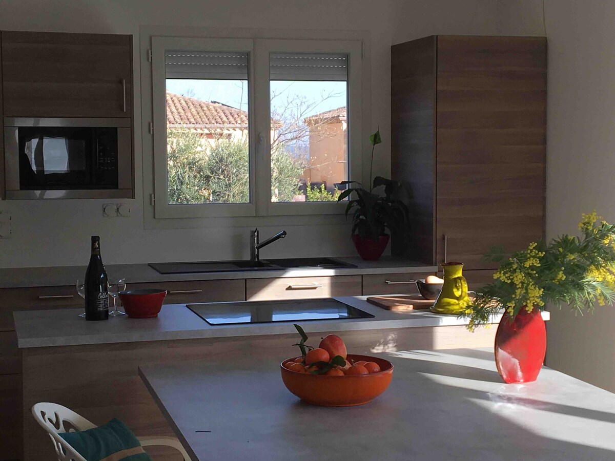 En el corazón de la naturaleza, acogedora casa de campo, clasificada 4*, 90 m2, Spa privado para 4 personas, orientación sur, hermosa vista al campo, piscina compartida. Casa de una sola planta, gran terraza entre viñedos y olivos, ventanal de 4 m, cocina totalmente equipada, sala de estar luminosa, 2 amplios dormitorios, 1 acceso directo a un baño y un inodoro separado. Dormitorio 1: 1 cama de 160/200, 1 cama de 90/200 que se puede convertir en una cama de 160/200 Dormitorio 2: 1 cama 160/190, 1 cama 90/190 Aparcamiento privado gratuito .
