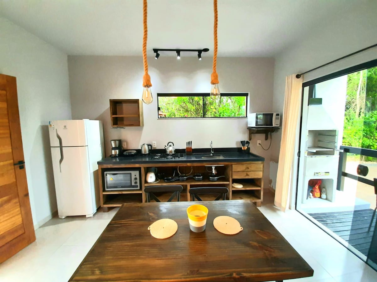 Estudio grande, cómodo, espacioso, acogedor, práctico, privado y seguro. Diseñado para dar la bienvenida a una pareja joven, buena con la vida, un amante de la naturaleza y las playas. A 5 minutos de la playa en coche (2 km) a 1300 m de centrinho. - Cama queen doble en la caja (grande y deliciosa). - Televisor 32 inteligente Fibra estable con wifi de 100 MB - Cocina completa y funcional Villa privada gigante para relajarse en la hamaca y disfrutar de la puesta de sol - Baño grande, caja de vidrio, delicioso lavabo de granito. - Aire acondicionado frío y caliente. :)