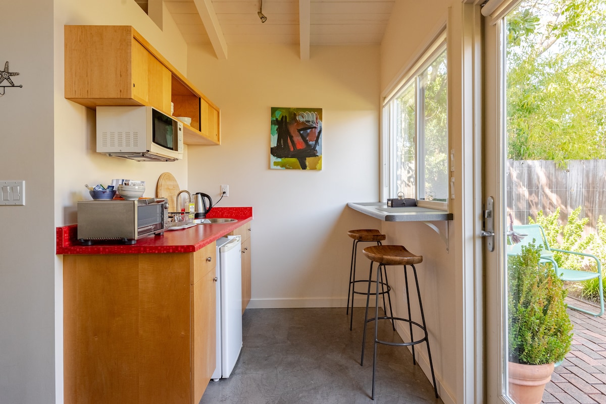 ID Tax 3099 Casa de campo de 1 dormitorio con un interior de estilo victoriano escondido con un patio tranquilo y compartido y mesa de picnic. Disfruta de tu estancia a poca distancia del centro histórico, donde encontrarás numerosas tiendas pequeñas, microcervecerías, bares, restaurantes, jardines, librerías, café y eventos locales. A pocas cuadras de varios modos de transporte público, esta ubicación es perfecta si quieres aventurarte más lejos y explorar los diversos paisajes del condado de Sonoma. Horario de silencio de 9:00 P. M. a 7:00 A. M.