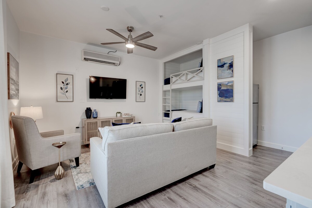 ¡Ubicado a lo largo de la famosa 30a! Este luminoso y espacioso apartamento 1/1 está perfectamente ubicado entre Alys y Rosemary Beach. Se encuentra a 5 minutos a pie o en tranvía gratuito del acceso a la playa, donde te recibirán las hermosas aguas esmeralda del mango de Florida. El apartamento se encuentra junto a las dos piscinas del complejo, el jacuzzi y la zona de parrilla. Convenientemente ubicados en la propiedad hay una variedad de tiendas, restaurantes, alquiler de bicicletas y actividades de temporada que incluyen música en vivo y fogatas.