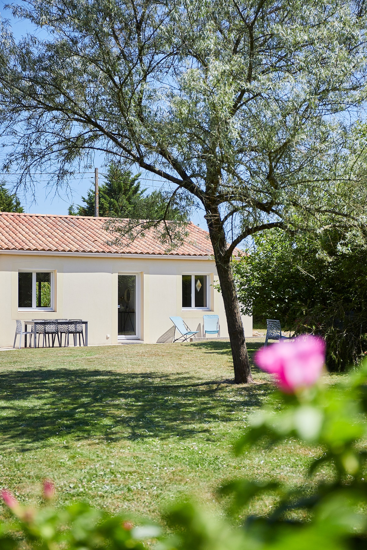Casa rural independiente tranquila en el campo, situada a 20 km de Nantes y a 40 minutos de Saint-Nazaire. Gran jardín arbolado y florido para una estancia tranquila y relajante. P Esta casa no es accesible para personas con movilidad reducida. (Existe un escalón entre el dormitorio y la sala de estar) A su disposición cocina equipada, TV, WIFI, lavadora, dormitorio independiente, terraza y jardín. Dispondrá de una plaza de aparcamiento gratuita. Se proporcionan sábanas y toallas de baño de forma gratuita