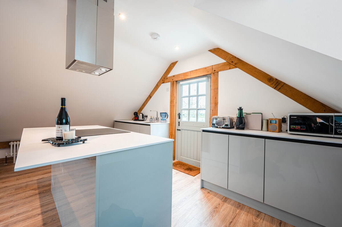 Alojamiento rural independiente de alta calidad rodeado de impresionantes vistas al campo para 2-4 huéspedes. El Bolt Hole está situado en un carril tranquilo en el pequeño pueblo de Scoulton, Norfolk. Este entorno rural está a solo unos pocos kilómetros de los centros de las ciudades locales o a 40 minutos en coche de la pintoresca ciudad de Norwich, The Norfolk Broads y la hermosa línea costera de Norfolk. Un amplio salón de planta abierta y cocina con un baño con ducha a ras de suelo. Arriba tiene un dormitorio grande, baño privado y armario.