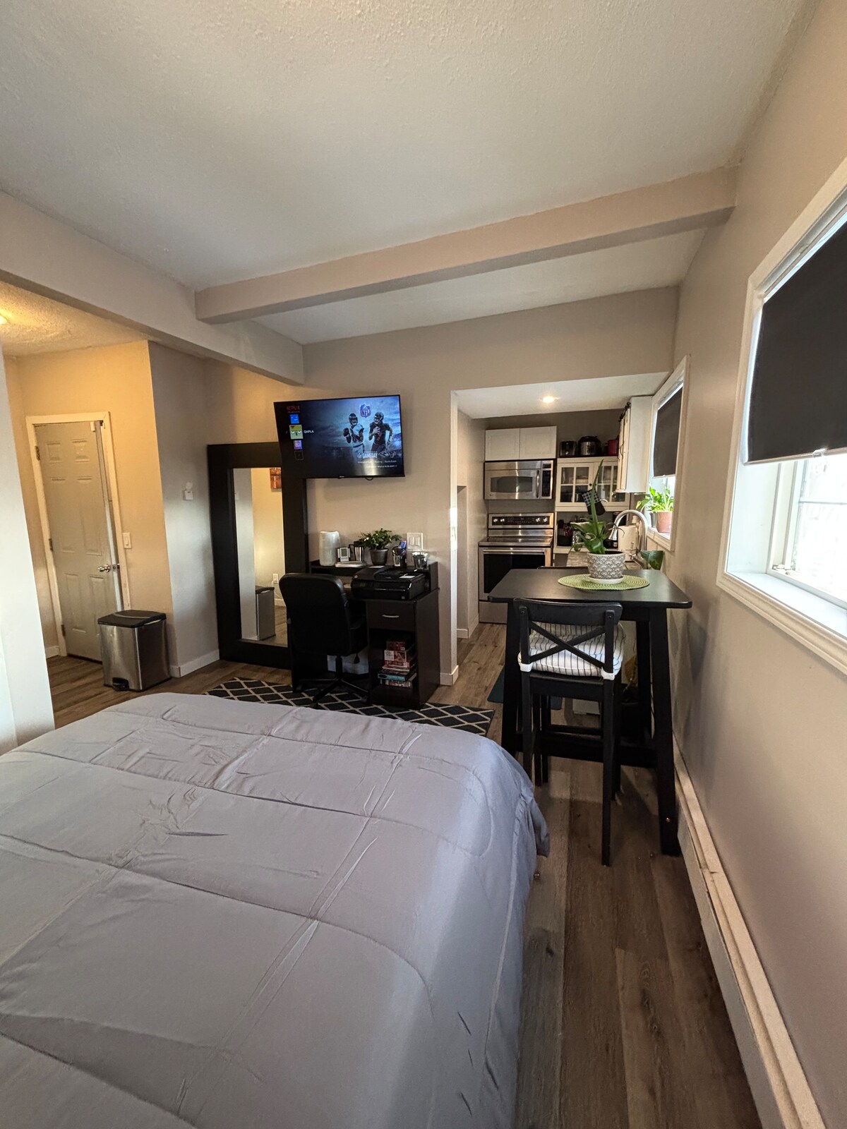Esta es una suite para solteros en un pequeño edificio de apartamentos. El edificio se encuentra justo detrás del campus de Grant MacEwan, que está a pocos pasos de Rogers Place, el sistema LRT (transporte público) y el centro de la ciudad. ¡Ideal para quienes asisten a Rogers Place para conciertos o a Grant MacEwan para estudios/conferencias! También está a 15-20 minutos a pie del Royal Alexandra Hospital, por lo que es una gran opción para estudiantes de medicina o NAIT.