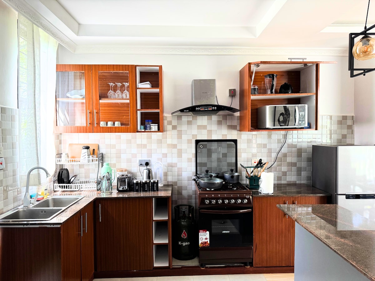 Bienvenido a tu hogar lejos de casa en este apartamento de 2 dormitorios con ubicación céntrica cerca de Makutano en Meru. El apartamento está totalmente amueblado con electrodomésticos nuevos y modernos y todo lo necesario para estar a gusto. Todo el apartamento está a 5 minutos del centro de la ciudad de Meru, así como de complejos comerciales populares como Sayen Hyper Mall.