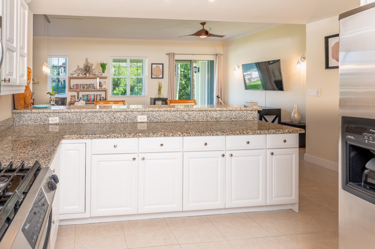 Santuari limpio y contemporáneo con vistas al agua; un condominio de dos dormitorios/dos baños con cocina completa y sala de estar repleta de todas las comodidades populares (wifi, televisión por cable, Apple TV, Netflix, consola de juegos Playstation, aire acondicionado central, plancha y tabla de planchar, lavadora y secadora, patio al aire libre, piscina y estacionamiento gratuito), convenientemente ubicado en Grand Harbour. The Shoppes at Grand Harbour y Harbour Walk están al lado. Perfecto para explorar y disfrutar de todo lo que las Islas Caimán tienen para ofrecer.
