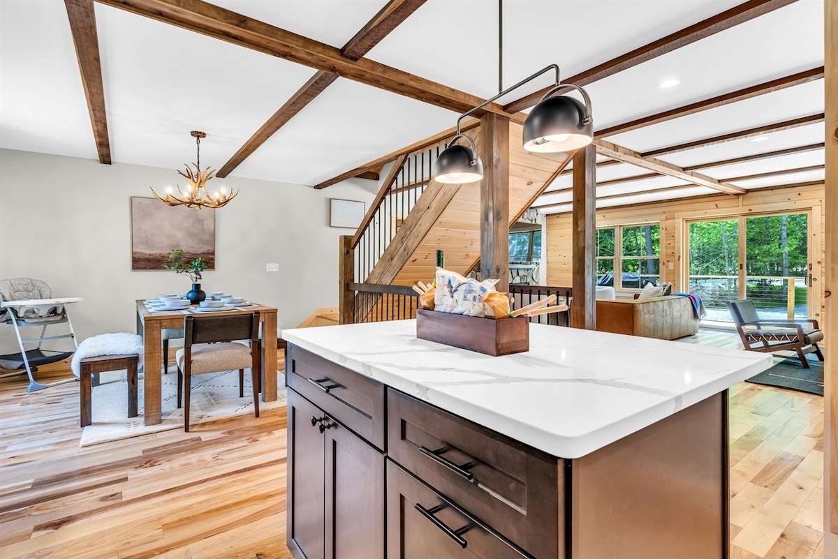 North Star Hideaway: acogedor retiro cerca de Sunday River ¡Escápate a North Star Hideaway, un nuevo alojamiento 4BR/3.5BA a solo 10 minutos de Sunday River! Tiene capacidad para 12 personas con una sala de juegos y una chimenea. 🛏️ Habitaciones: (4 dormitorios) Arriba: 2 suites tamaño king con televisores inteligentes, aire acondicionado mini-split y baños privados. En la planta baja: 1 habitación queen, 1 habitación con literas (2 juegos), además de una habitación extra con sofá cama. 🔥 Chimenea | Wifi Starlink | Sala de juegos Xbox | Cuarto de barro de esquí | Kit S'mores ¡Reserva ahora para la aventura y la relajación!