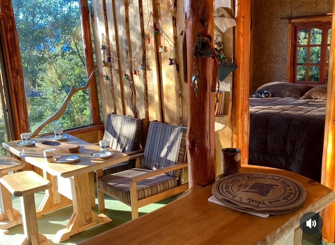 La cabaña fue hecha por nuestras propias manos inspirada en una arquitectura de cuentos de hadas, situada sobre las faldas del Volcán Calbuco. La cabaña funciona con un sistema fotovoltaico, y Fitodepuración de aguas residuales. Es un lugar de relajacion y contemplacion, lejos de la sociedad de consumo, ideal para repensar las prioridades con el fin de experimentar por un tiempo, lo que es “volver a lo esencial” Ven a sentir la naturaleza y sus sonidos.