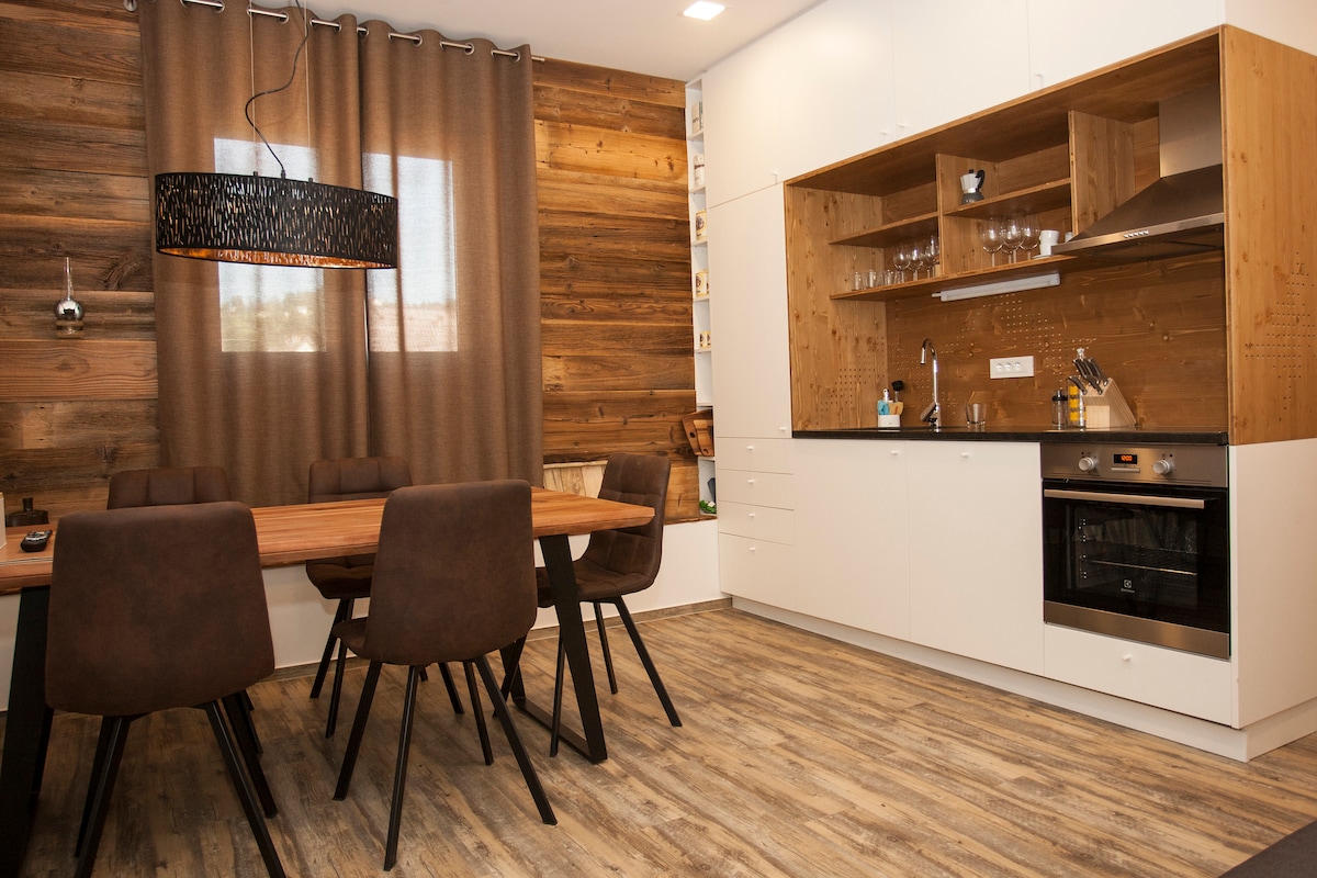 Nuestro deseo es hacer que los huéspedes se sientan como en casa cuando lleguen. Debido a que los materiales naturales y los elementos de la naturaleza desempeñan un papel importante en la vida, amueblamos los apartamentos con la mayor cantidad de madera posible y le añadimos un toque de vida en el entorno local. En los apartamentos, las paredes están cubiertas con tablas de sol de 100 años de antigüedad de Pohorje. En el baño encontrarás paredes y pisos cubiertos con azulejos con la apariencia de granito de Pohorje.
