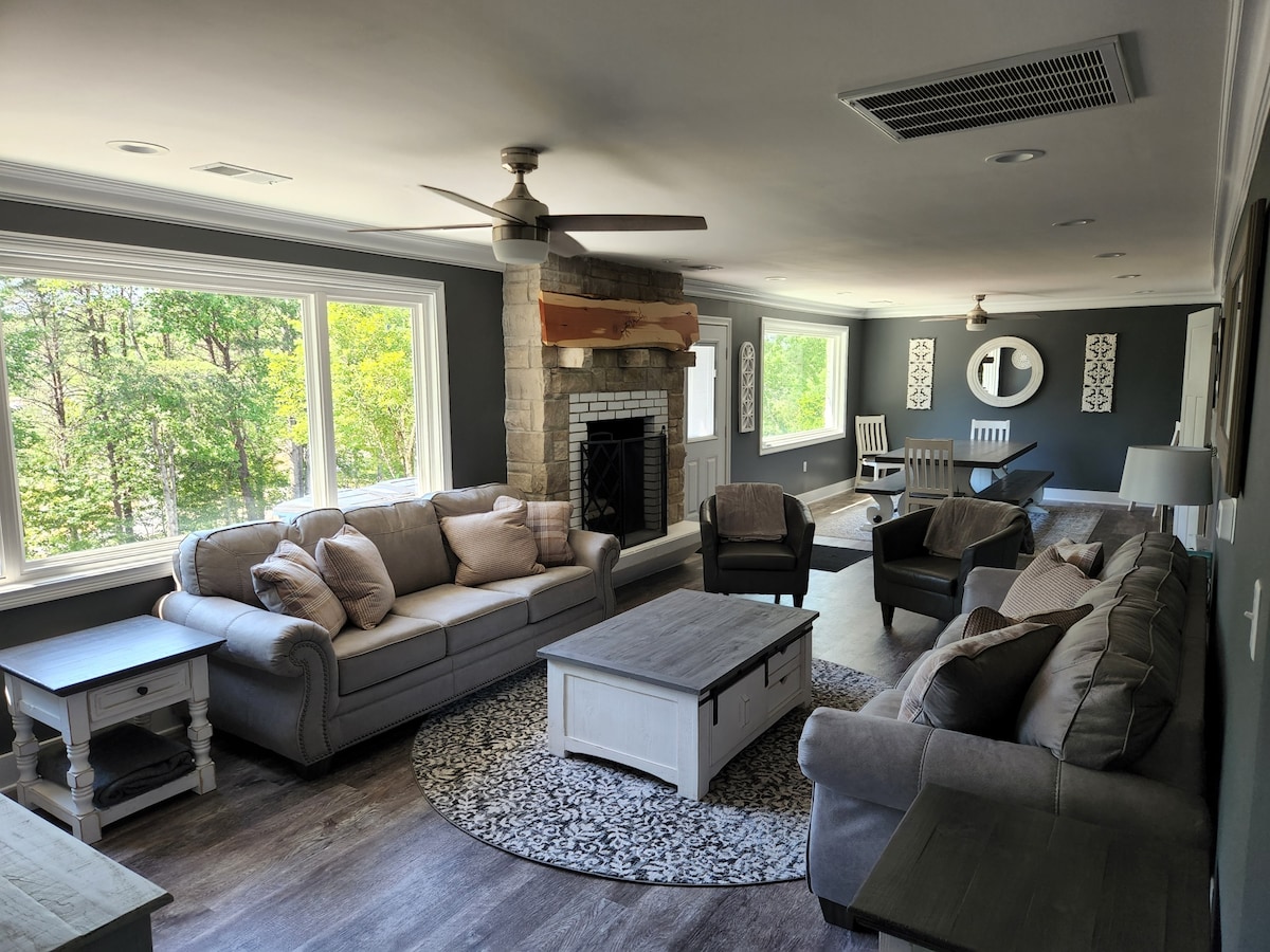 Relájate en el bosque en esta increíble casa de campo de 4 dormitorios y 2,5 baños. A solo unos minutos de la rampa para botes de Ramsey Point, esta es tu base para tus vacaciones en el lago Cumberland. Trae tu barco; hay un amplio estacionamiento en el lugar. ¿No tienes barco? No hay problema, los puertos deportivos de Beaver Creek y Conley Bottom están muy cerca. La casa cuenta con servicios modernos y una cocina totalmente equipada. Disfruta de la chimenea en el interior o del fogón al aire libre. Te esperan vistas al bosque y aire fresco en abundancia, ¡especialmente desde el jacuzzi! No se permite fumar en absoluto dentro ni fuera.