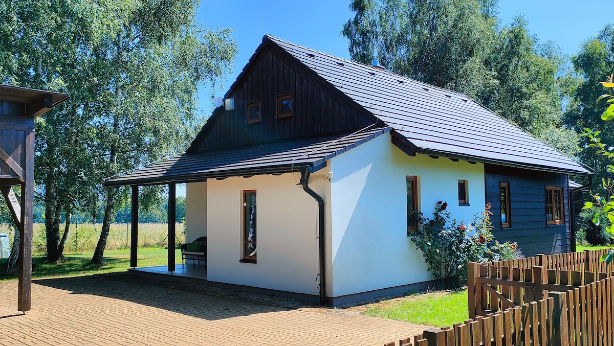 Ofrecemos alojamiento en una casa de campo completamente equipada y renovada en el pintoresco pueblo de Vilémov, situado entre los parques nacionales de la Suiza sajona y la Suiza bohemia. La ubicación de la cabaña, al pie de un bosque, permite disfrutar de un descanso tranquilo y relajarse, así como de unas vacaciones activas. El senderismo o el ciclismo invitan a descubrir la belleza de ambos parques nacionales, con maravillosos destinos turísticos. La casa es adecuada tanto para estancias de verano como de invierno, con la posibilidad de practicar senderismo, esquí y esquí de fondo.