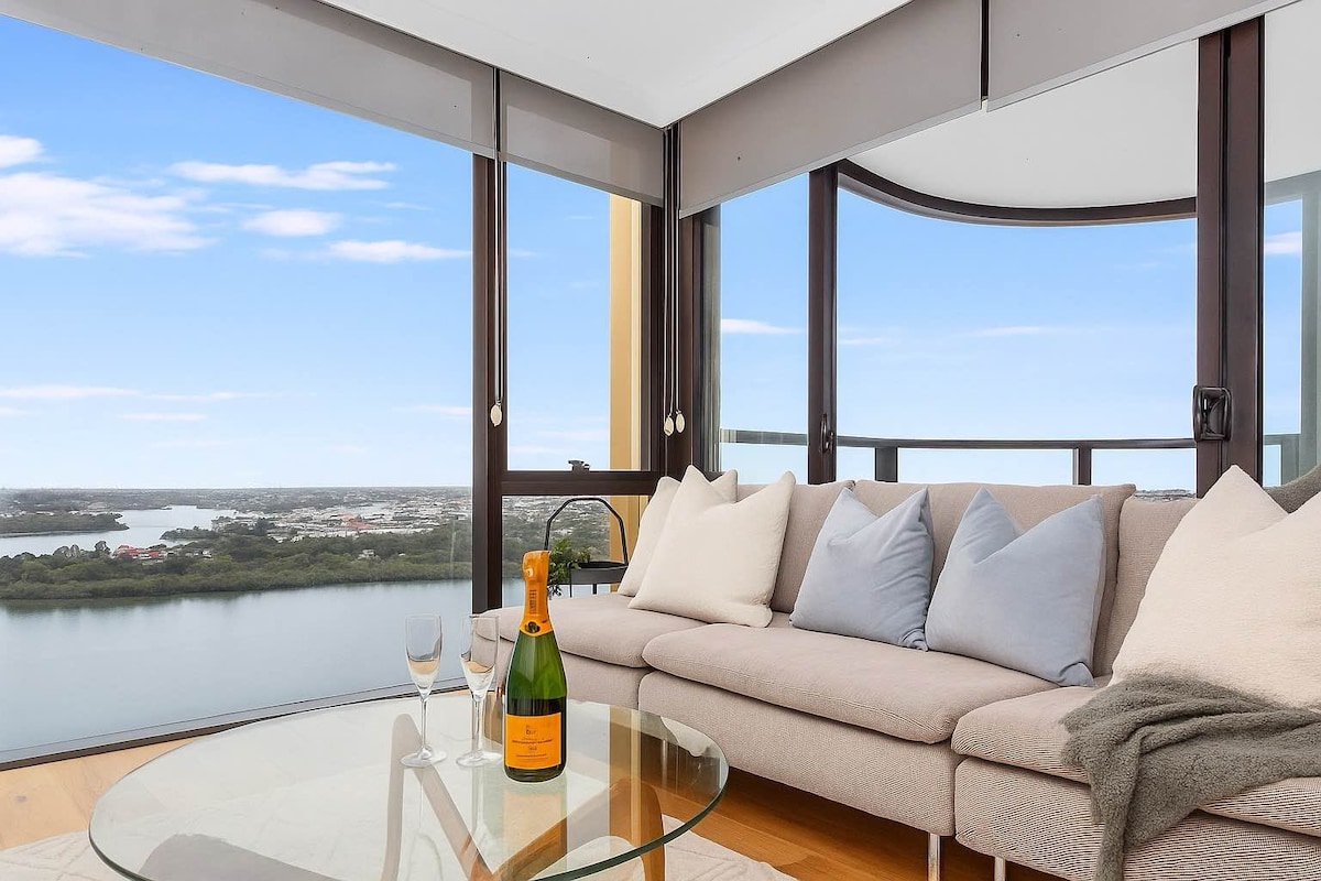Apartamento moderno de gran altura con vistas al estadio y al río, perfectamente situado cerca del transporte, restaurantes y eventos. ☆ VISTAS PANORÁMICAS Sumérgete en escenas ininterrumpidas del estadio Accor y el río Parramatta desde el balcón, la sala de estar y ambos dormitorios. ☆ UBICACIÓN PRIVILEGIADA a pocos pasos de los enlaces de ferry, autobuses y Marina Square, con cafés, supermercados y paseos junto al agua justo afuera de tu puerta. ☆ BASE LISTA PARA EVENTOS ya sea un concierto o una escapada familiar, estás a minutos del Parque Olímpico de Sídney.