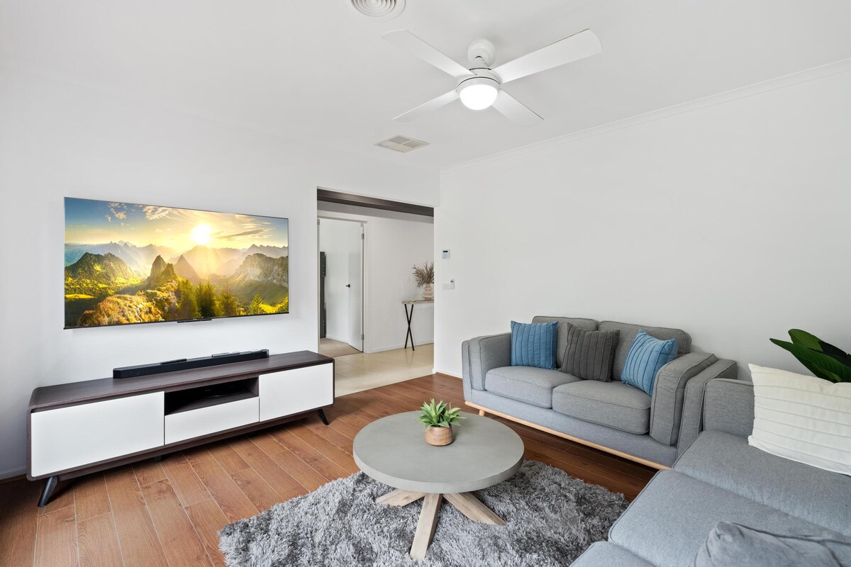 ¡Fantástica zona de entretenimiento! ¡Mucho espacio abierto! ¡Mira a los niños jugar mientras te relajas al sol y luego enciende las luces de hadas y de discoteca para divertirte por la noche! Estarás cerca de todo: El centro acuático local está al otro lado de la carretera. A 20 minutos a pie de la playa y del centro comercial Rosebud. A 10 minutos en coche de Peninsula Hot Springs. * Juegos, trampolín y juguetes infantiles disponibles. * Aire acondicionado de ciclo inverso. * Callejón sin salida seguro y tranquilo. * Cercas cerradas para mascotas * Llegada y salida flexibles * Se proporciona ropa de cama.