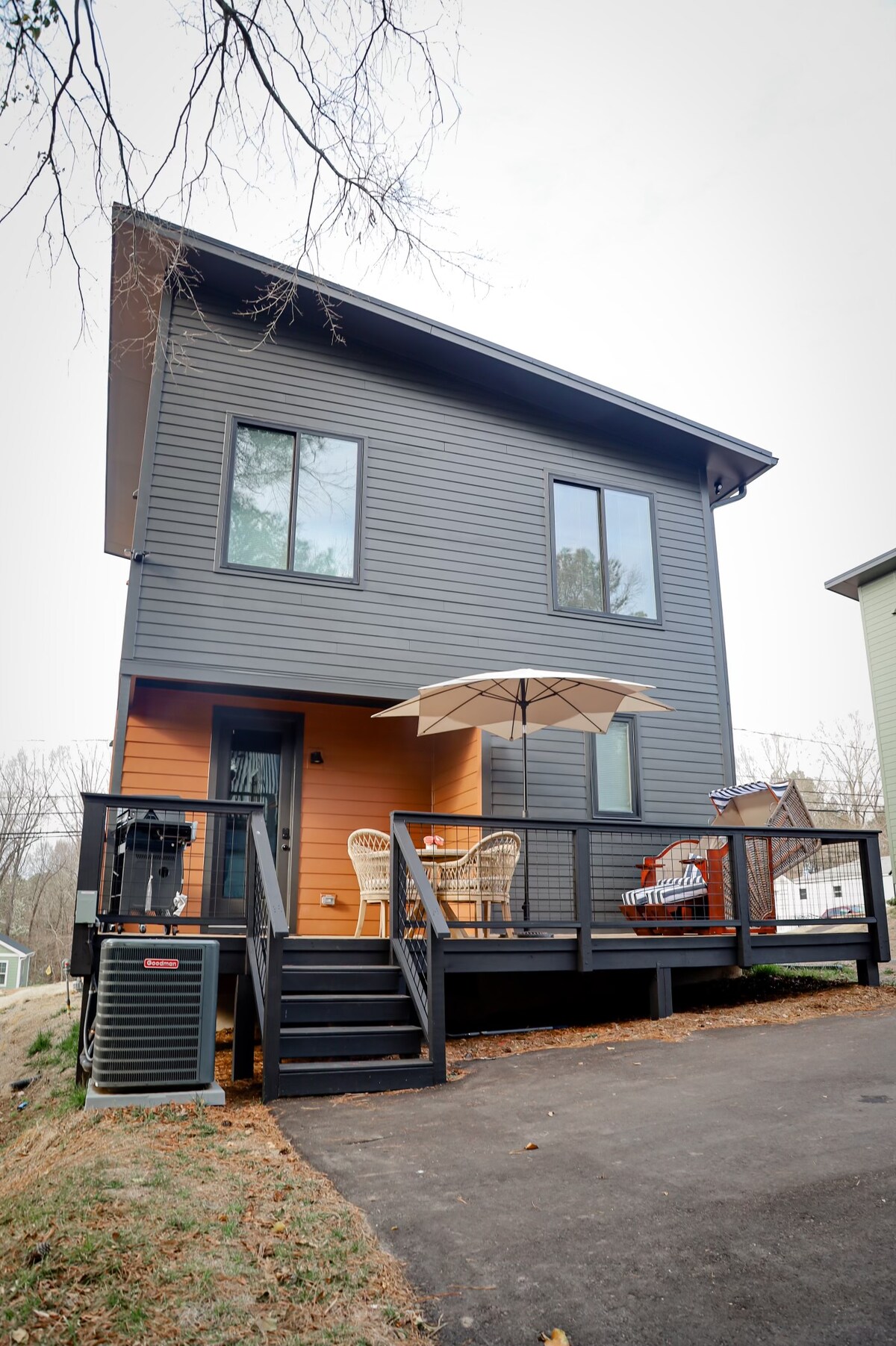 Relájate y recarga energías en una moderna casa solar pasiva diseñada por artistas escondida en el bosque a pocos minutos del centro de Durham y la Universidad de Duke. Este refugio estilo cabaña combina naturaleza, comodidad y conveniencia, ideal para escapadas de fin de semana, visitas a Duke o estancias prolongadas. En el interior encontrarás obras de arte originales, abundante luz natural y una cocina equipada profesionalmente. En el exterior, disfruta del canto de los pájaros y de los árboles maduros mientras te quedas cerca de los restaurantes, cafeterías, cervecerías y tiendas de Durham.