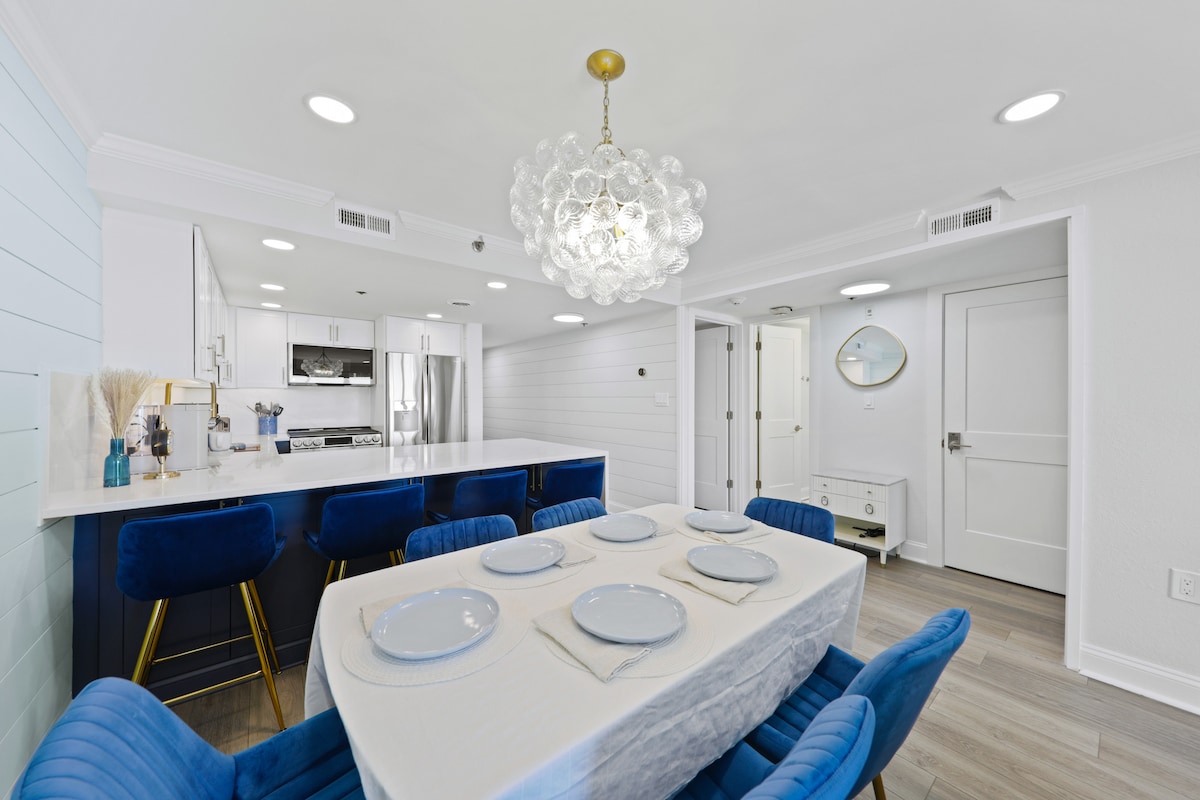 Moderno condominio de 2 dormitorios y 2 baños junto a la bahía en Ocean City a solo 2 cuadras de la playa, el paseo marítimo y los eventos de la entrada. Capacidad para 6 personas con camas tamaño king y 2 queen, cocina completa, balcón, piscina al aire libre, televisores inteligentes, WiFi y estacionamiento gratuito (incluido el pase de invitados). Camina hasta Springfest, Bike Week, espectáculos aéreos, paseos y restaurantes. Equipo de playa y lavandería en el lugar incluidos. Estaciona una vez, camina a todas partes: ideal para familias, parejas y asistentes a eventos durante todo el año.