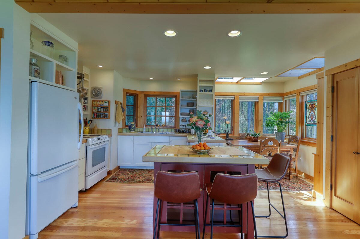Port Townsend, Washington. Bienvenido a nuestra escapada romántica al campo ubicada en una parcela arbolada de 10 acres a solo 12-15 minutos de Port Townsend o Port Hadlock. Se encuentra en el centro de los servicios de la zona, cervecerías, bodegas y sidrerías. Nuestra casa de campo ha sido diseñada para ser un espacio acogedor, cálido y romántico con carpintería personalizada, mostradores de madera, calefacción por suelo radiante y toques especiales para que tu estancia sea agradable. Tenemos un jardín de temporada con hierbas y manzanas en un hermoso patio privado al aire libre.