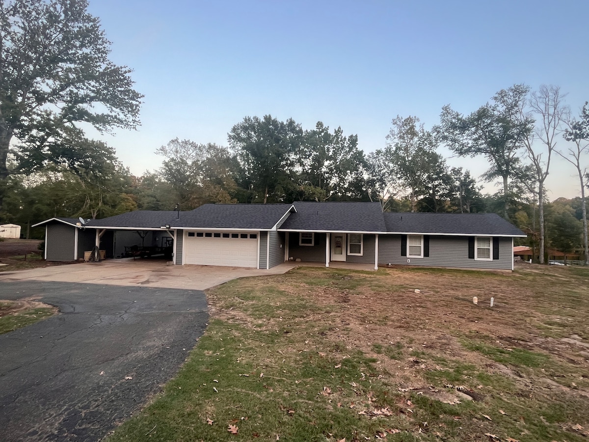 Relájate con toda la familia en este lugar tranquilo. La propiedad se encuentra aproximadamente en 50 acres . Tiene un gran porche trasero para sentarse con una hermosa vista . Estás en medio de la naturaleza . Por la noche se puede ver ciervos pastando. Tenemos una piscina redonda de más de 18 pies con vistas espectaculares del pasto. Estamos a unos 30 minutos del lago Toledo Bend. El bosque nacional de Kisatchie está a unos 30 minutos. Rutas de senderismo y natación. Esta casa tiene una cama tamaño king, una cama queen y cuatro camas individuales.
