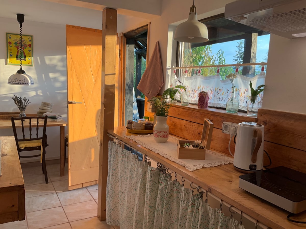 Tendrás: - salón de 20 m² + sofá doble - dormitorio con colchón doble en la planta superior - chimenea de leña - baño de camping (interior) - cafetera de filtro - hervidor de agua - cocina de gas - frigorífico - barbacoa (leña/carbón disponible) - vajilla - cubeta -ducha exterior con agua caliente (marzo-noviembre) - lugar para fogatas - bicicletas de montaña