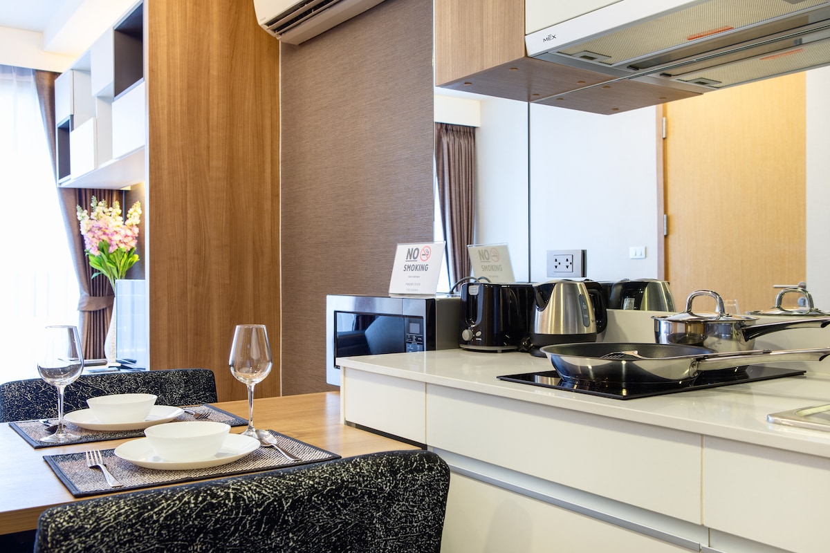 Esta casa especial es un departamento de concepto completamente nuevo diseñado por un diseñador, y toda la casa se encuentra en el corazón de Bangkok, cerca de todo.Incluye 1 dormitorio, sala de estar, comedor, cocina y 1 baño. [Ubicación] - Transporte conveniente: área central de Sukhumvit, 980 m a pie de la estación de metro Phrom Phong, 10 minutos a pie - Santuario de Erawan 4,7 km, Siam 8 km, Gran Palacio 13 km - A 10 minutos caminando del centro comercial Emporium. - Comodidad: tiendas de conveniencia las 24 horas por todas partes, grandes supermercados, centros comerciales, spa bien conocido. [Baño] - Bañera separada seca y húmeda, ducha y lavabo, armario, secador de pelo, ducha con jabón corporal, champú y acondicionador, detergente. [Servicios proporcionados] - Llegada autónoma y salida autónoma (check-in a las 15:00, salida a las 11:00) - La cocina tiene electrodomésticos como nevera, estufa, microondas para cocinar de forma sencilla.Por favor, limpia lo que ensalce y cuídate cuando esté en uso. - Se proporcionan lavadora. Lavadora y detergente para la ropa. - Sala de estar con cómodo sofá, TV por cable, aire acondicionado, mesa de café. - Hay wifi disponible en el apartamento y en la habitación. - Armario, perchas y toallas de baño.