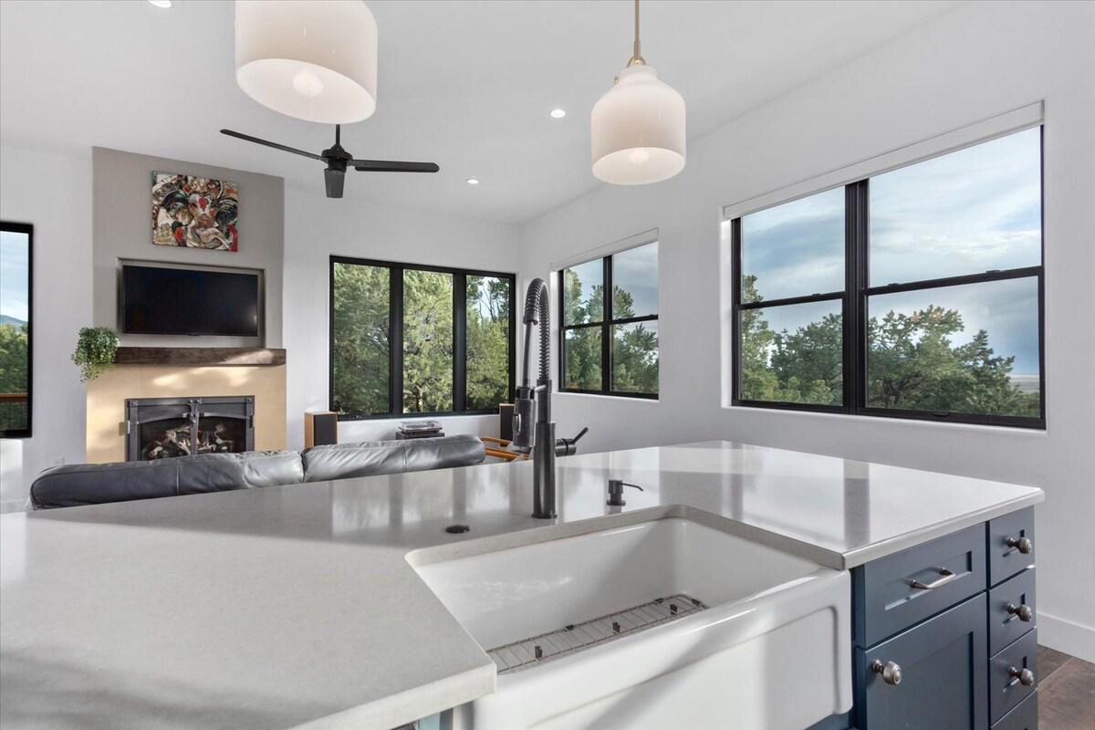 La nueva casa ofrece un espacio precioso, vistas impresionantes y está rodeada de naturaleza. Esta casa combina a la perfección la elegancia moderna con un refugio remoto en la montaña. El lugar perfecto para el santuario, la paz y el aire fresco. Este es el lado más grande de una propiedad «dúplex» con una suite de invitados contigua. Los dos lados se pueden combinar si quieres más espacio y privacidad. Nota: Esta propiedad no es apta para grupos ruidosos, se encuentra en un barrio tranquilo. Consulta las normas sobre las horas de silencio estricto.