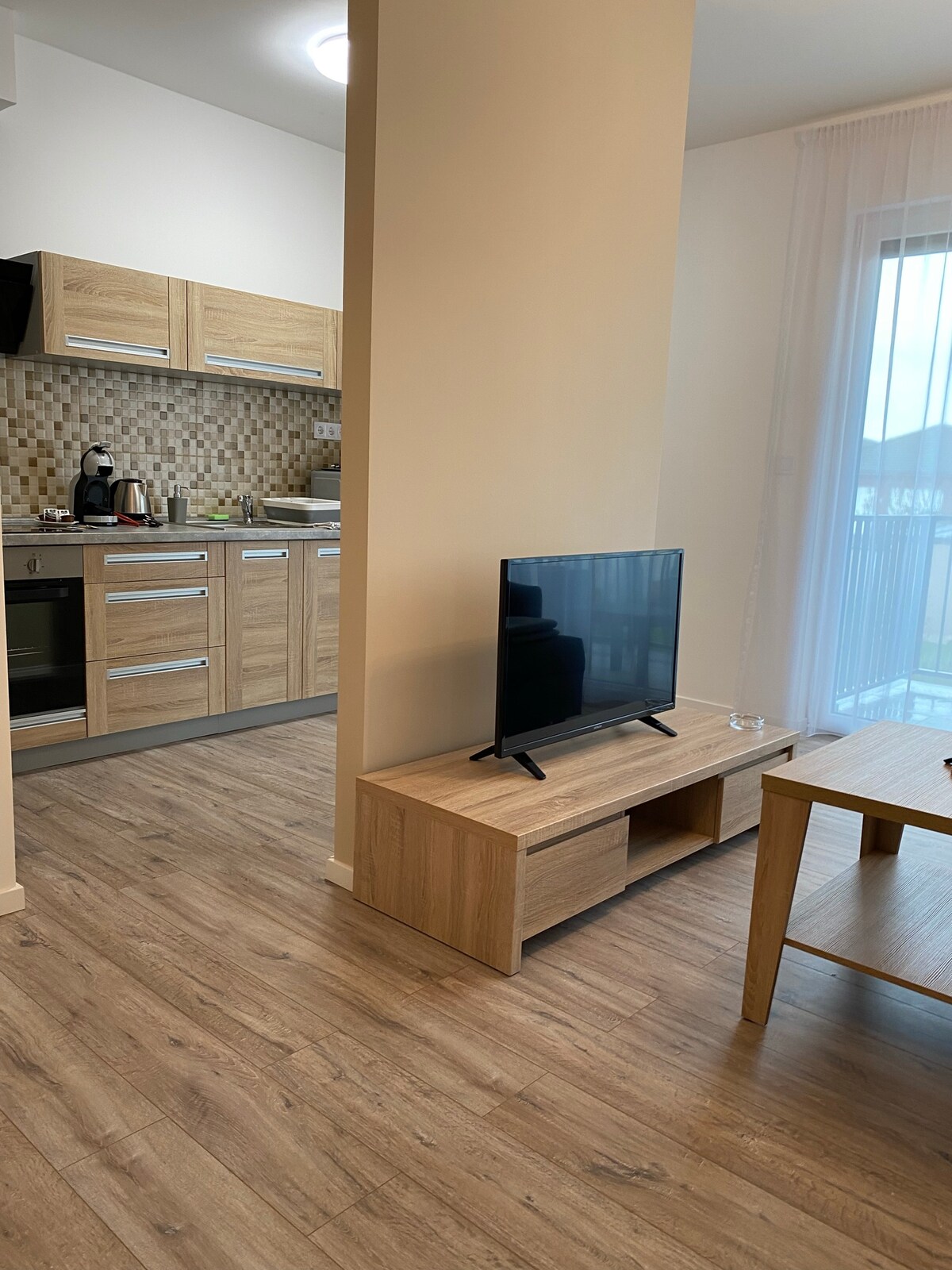 Apartamento luminoso, amueblado con buen gusto y de estilo moderno con un hermoso panorama en la parte recién construida de Vác. La gran terraza que se abre desde la sala de estar hace que el espacio sea aún más espacioso. Los atardeceres son maravillosos. El apartamento está equipado con todo, cómodo y acogedor. Televisores de pantalla grande, algunos buenos libros y un cómodo sofá que te invita a relajarte. La escalera abierta forma parte del diseño, que es un elemento importante del carácter del apartamento.
