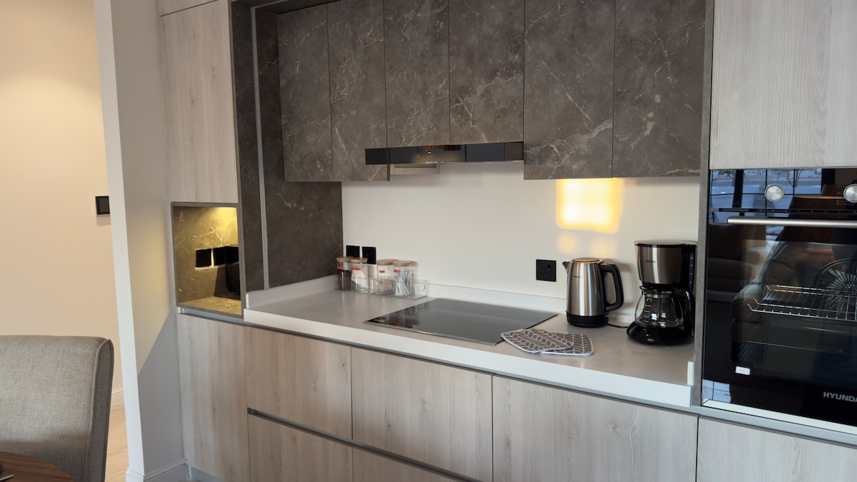 ¡Bienvenido a tu elegante escapada! Este lujoso apartamento de 1 dormitorio ofrece una combinación perfecta de comodidad moderna y diseño sofisticado. Amueblado cuidadosamente con interiores elegantes, acabados de alta gama e iluminación ambiental cálida, este espacio está diseñado tanto para la relajación como para la productividad.