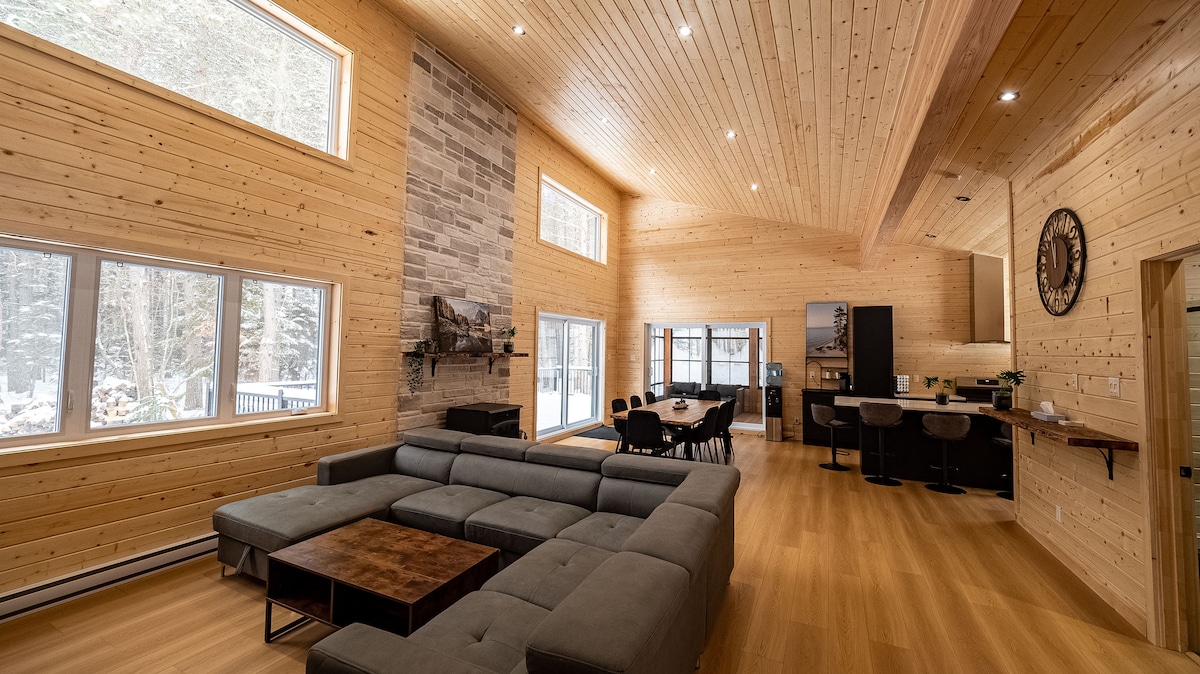 🏡 El sueco, un prestigioso chalet en pleno bosque, a 1h30 de Montreal. Ideal para una escapada romántica, en familia o para teletrabajo💻, combina diseño escandinavo, comodidad y tranquilidad. 🔥 Chimenea interior/exterior para un ambiente cálido 🛁 SPA y sauna para una relajación absoluta 📶 Wi-Fi rápido y espacio de trabajo para combinar productividad y bienestar 🌿 Fenestración grandiosa para una inmersión en la naturaleza ¡Disfrute del lago y los senderos para una estadía inolvidable!