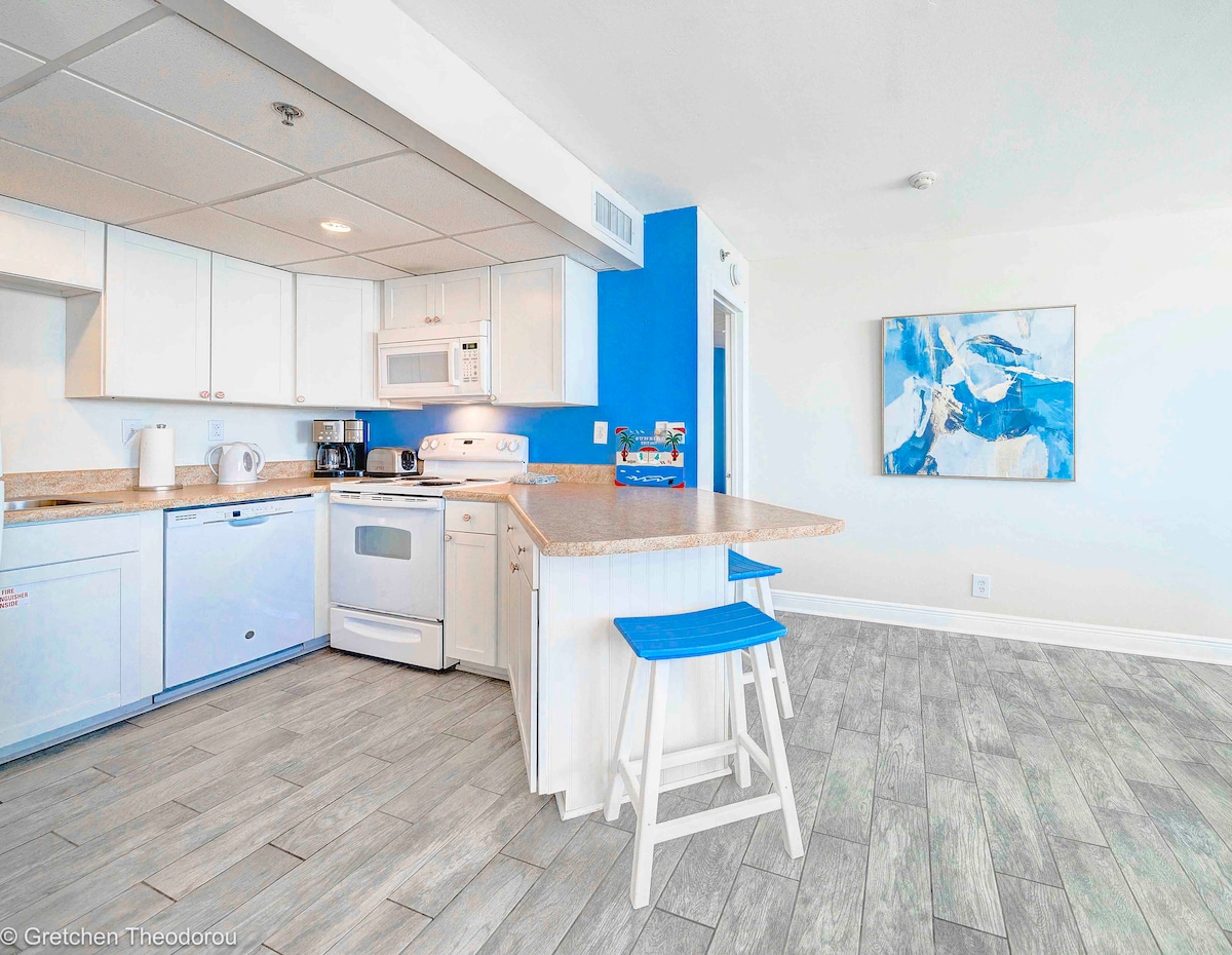🏖Una joya única frente a la playa en el Majestic Beach Resort más buscado, con fascinantes vistas al golfo de México y a la lujosa playa de arena blanca. 🏖Cuenta con una cómoda cama tamaño king y una cuna individual, y una cocina totalmente equipada para que disfrutes de una estancia acogedora. 🏖Justo en el corazón de Panama City Beach, a pocos pasos de una gran variedad de restaurantes, cafeterías y entretenimiento para todas las edades. ¡🏖Despiértate con las hermosas vistas directamente desde la cama y contempla el atardecer sobre el mar desde el balcón!