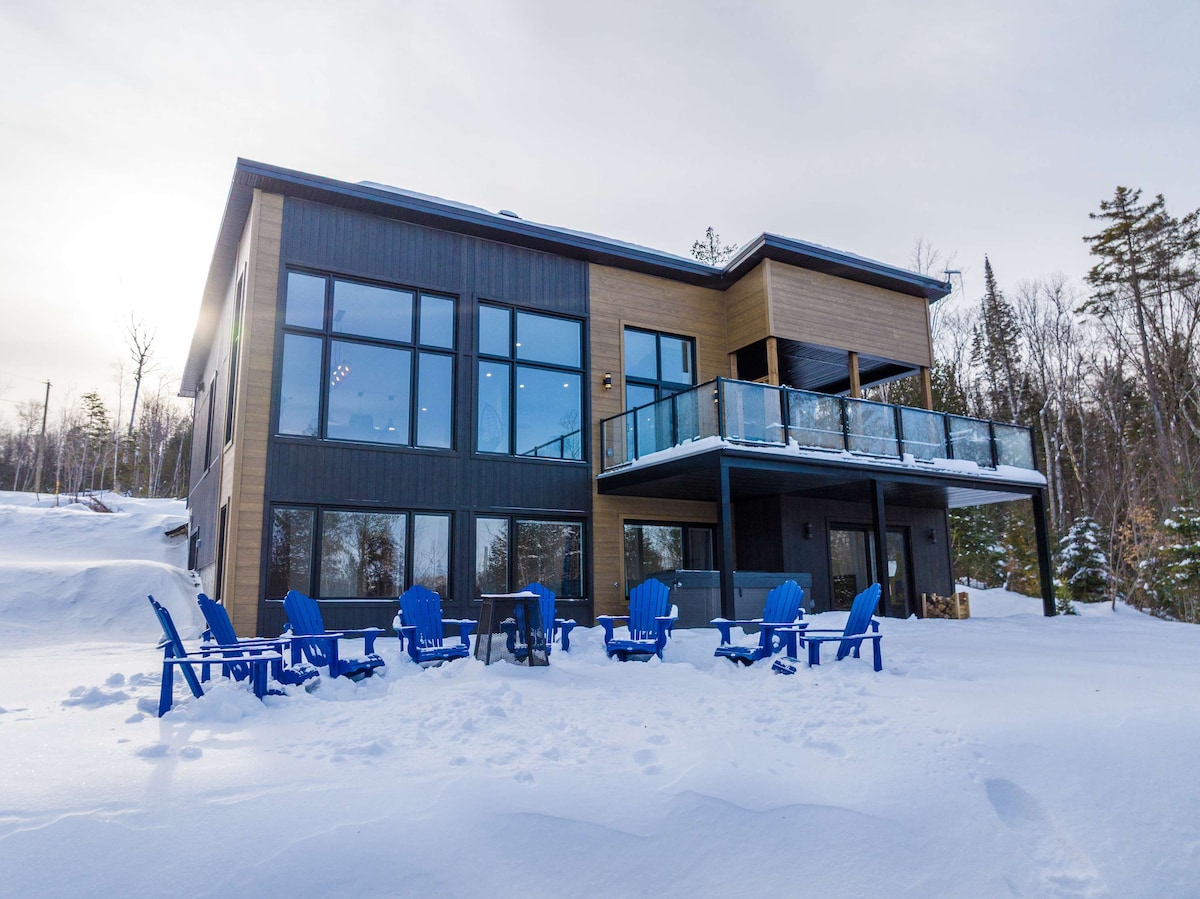 🏡 El sueco, un prestigioso chalet en pleno bosque, a 1h30 de Montreal. Ideal para una escapada romántica, en familia o para teletrabajo💻, combina diseño escandinavo, comodidad y tranquilidad. 🔥 Chimenea interior/exterior para un ambiente cálido 🛁 SPA y sauna para una relajación absoluta 📶 Wi-Fi rápido y espacio de trabajo para combinar productividad y bienestar 🌿 Fenestración grandiosa para una inmersión en la naturaleza ¡Disfrute del lago y los senderos para una estadía inolvidable!