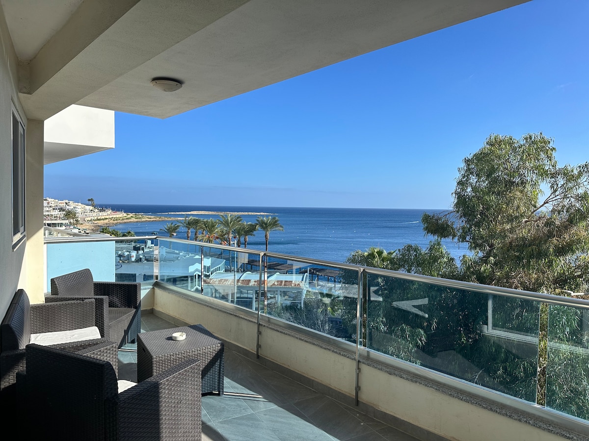 Sea view Suite - Time-share for rent at the Radisson Blu Resort & Spa, Golden Sands, Malta. The Radisson Blu Resort & Spa is a luxurious 5-star hotel set in a prime location at the Golden Sands Bay, l/o Mellieha, Malta. Situated on the cliff edge with unobstructed sea views. Host owns timeshare in a one-bedroom deluxe self-catering, sea-view Zenith Suite unit with magnificent sea views and overlooking the sandy beach of Golden Sands Bay. Sleeps 4 adults.