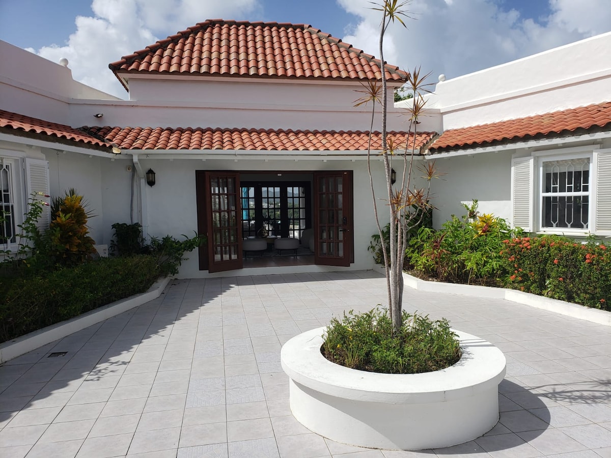 Entra en esta hermosa villa de estilo español a través de un magnífico patio floral perfecto para el entretenimiento. A través de la entrada de doble puerta hay una sala de estar céntrica que se derrama hasta el patio y la zona de la piscina con vistas a un campo de golf de 18 hoyos, al mar Caribe al oeste y al Océano Atlántico al este. Desde la entrada principal puedes dirigirte a la espaciosa cocina que incluye una barra de desayuno. Justo al final del pasillo, una sala familiar espaciosa pero acogedora.