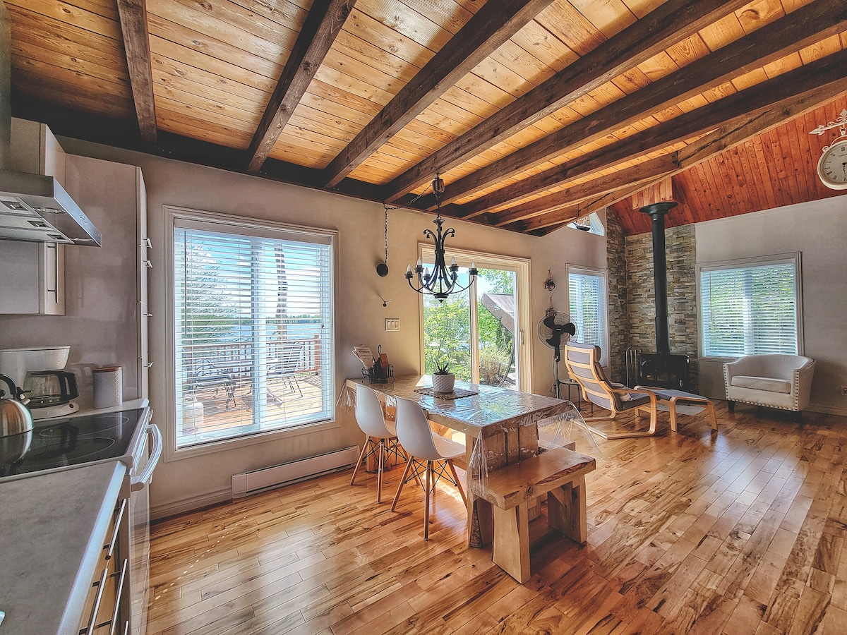 citq:308200 Este magnífico chalet rústico soleado todo el día le encantará por su tranquilidad y accesibilidad. Sus cautivadoras montañas encantarán tanto al huésped que viaja solo como a los que viajan en familia. Tanto si busca actividades al aire libre como si busca tranquilidad, sus necesidades se satisfarán. **** Nota: no se aceptan embarcaciones en el lago que no sean las que proporcionamos. *****