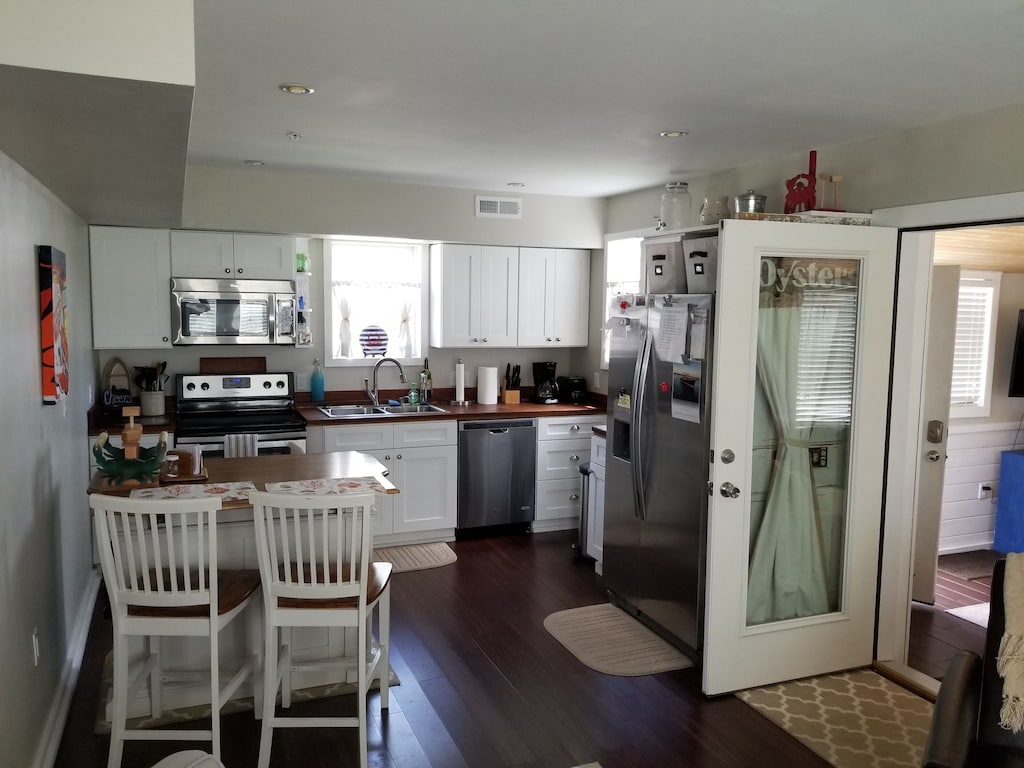 Casa de campo situada directamente en la bahía de Chesapeake. Incluye playa de arena, patio, porche cerrado y terraza. Dos kayaks para disfrutar. Dos dormitorios más estudio. Dos baños completos. Cocina totalmente equipada. Cafetera Kurig y normal disponibles. Dormitorio principal: colchón tamaño queen. Segundo dormitorio: colchón de tamaño completo (doble). Tercer dormitorio: cama de día doble con cama nido doble. Ambos colchones de tamaño individual.