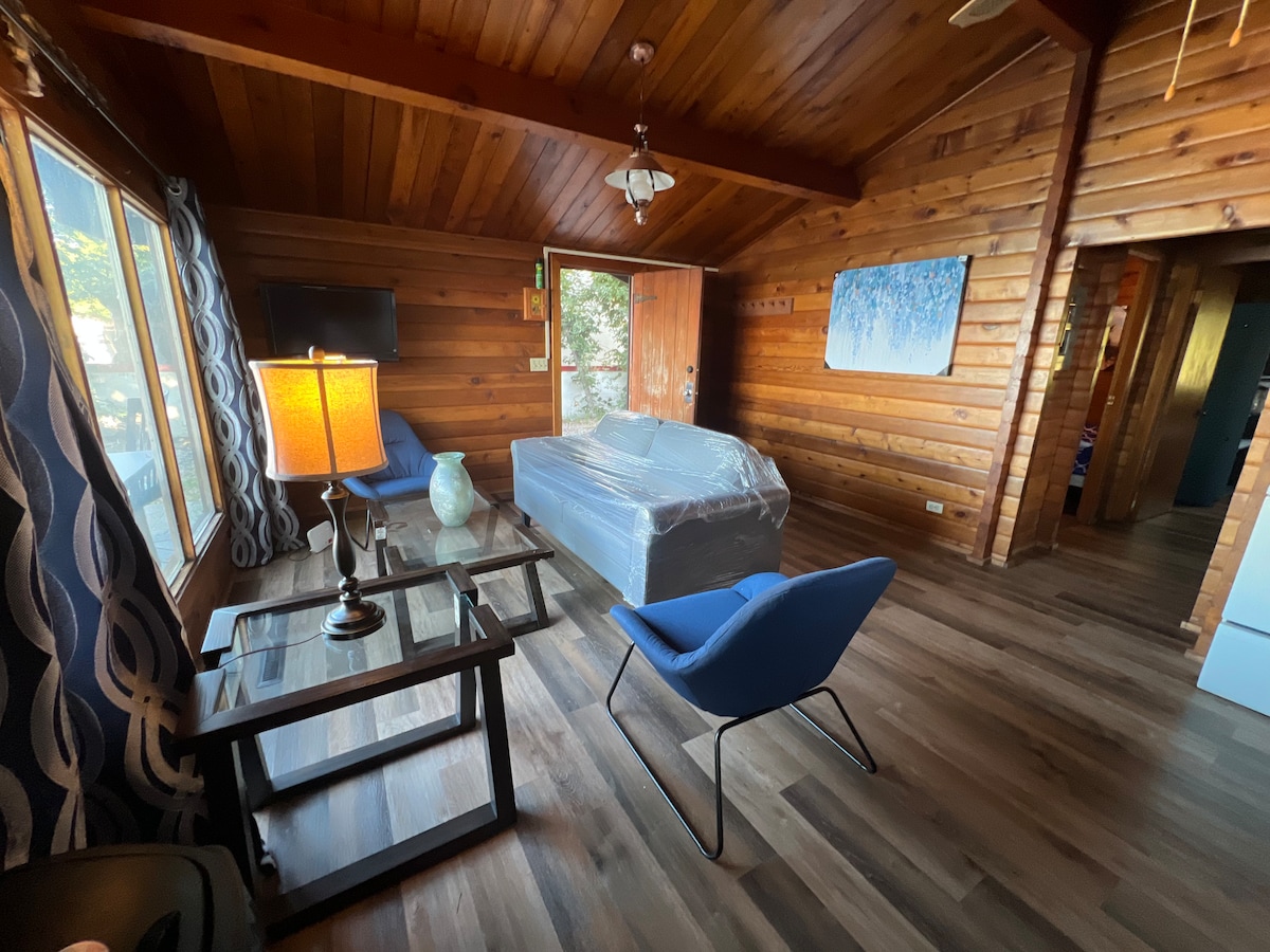 ¡Pequeño pedazo de cielo! Nuestra acogedora cabaña se encuentra convenientemente entre Elk Point y St. Paul, con acceso directo al Iron Horse Trail. Un pequeño lago con las puestas de sol más increíbles, ven y relaja tu mente. Se admiten mascotas, pero te pedimos que te comuniques primero, NO tenemos un patio cercado y las mascotas DEBEN estar atadas. La cabaña se encuentra en un patio compartido con la casa principal en la que residimos. Todas las personas que entren en el agua para nadar o realizar embarcaciones de placer deben hacerlo bajo tu propio riesgo.