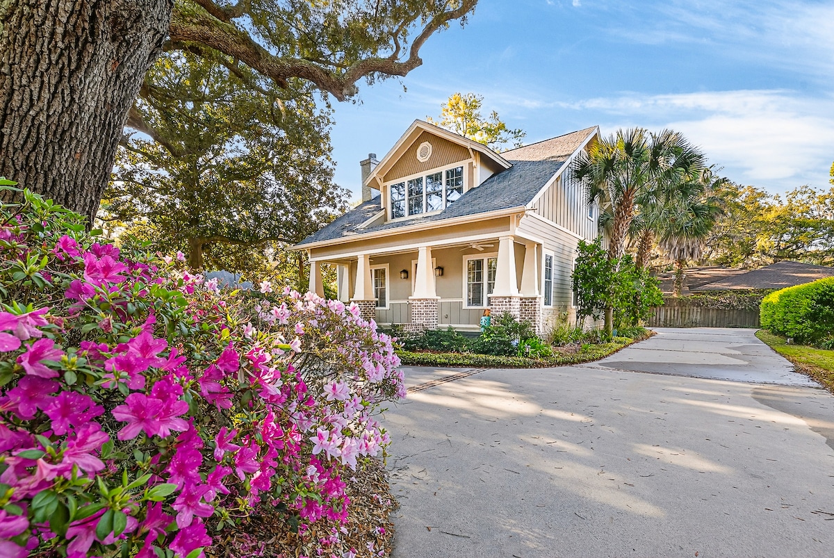 Acogedora y pintoresca casa de huéspedes ubicada en el corazón de la zona del muelle/pueblo de St. Simons, restaurada a su herencia vintage. Aire acondicionado nuevo y TV inteligente de 65 pulgadas. Tiene una entrada privada, pero no necesitarás el coche: ¡esta casa tiene una ubicación tan increíble que podrás ir andando a todas partes con facilidad! Nuestra pequeña casa de playa está completamente cerrada con una valla de privacidad para que tu mascota corra libremente. También cuenta con un porche para comer fuera con una parrilla y una ducha al aire libre.