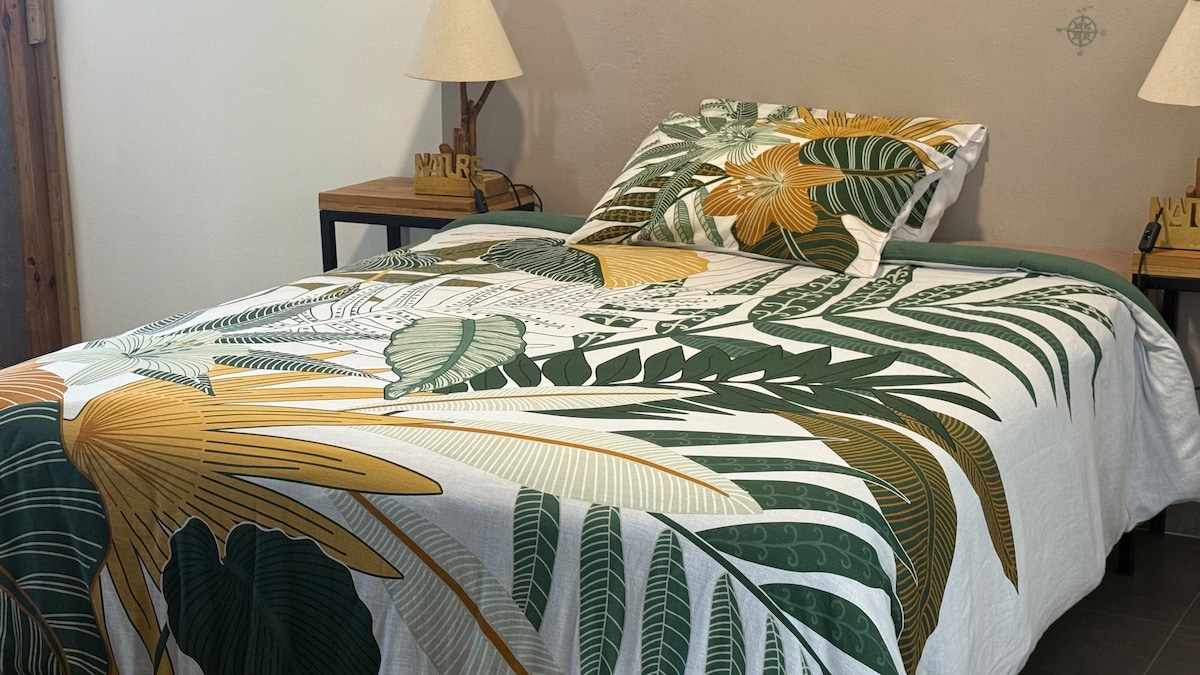 Estudio situado en la planta baja de una casa unifamiliar. Cocina americana equipada, terraza, cama queen size y amplio cuarto de baño. Ideal para descubrir el sur salvaje , solo o en pareja. Propongo algunas ideas de escapada en un programa completo si lo desea. Disfrute del río Langevin, la marina de Vincendo y el cabo Jaune, el cabo Malo y la ruta de las lava hacia el este o Manapany, Ti sable y Grand Anse al oeste. Alquiler desde 1 noche. Descuento a partir de la segunda noche
