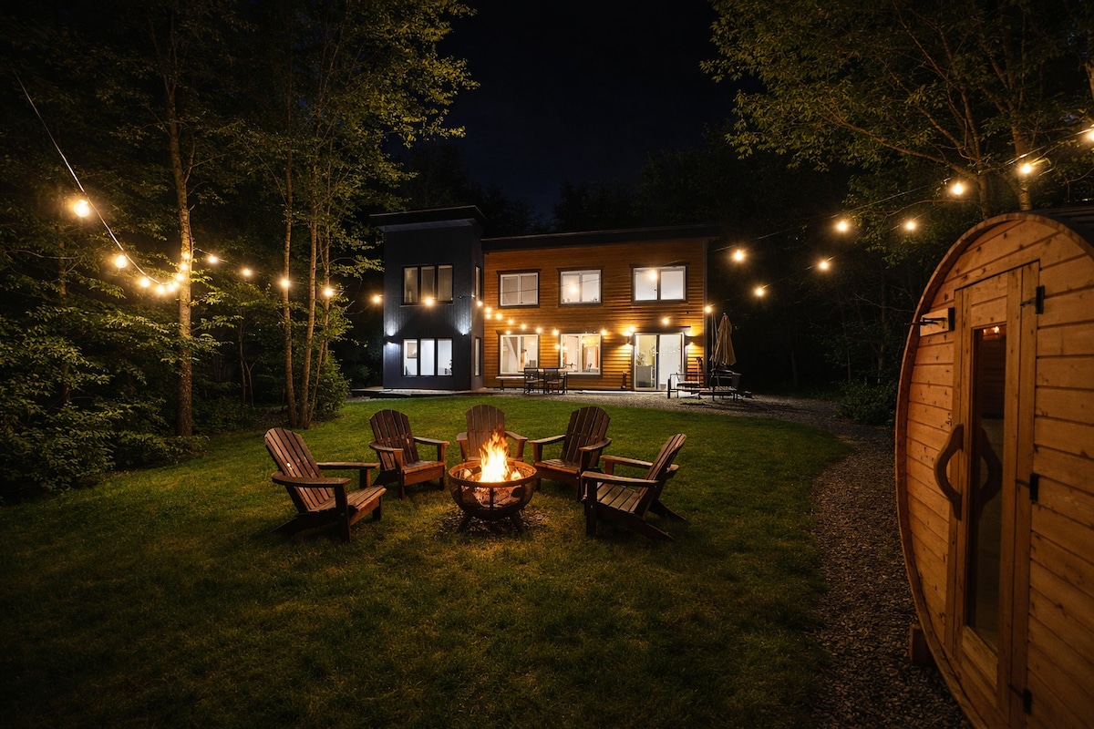 CASA DE CAMPO DE LUJO CON CAPACIDAD PARA 15 ADULTOS + 2 NIÑOS Los ciclistas, esquiadores y entusiastas del aire libre se sorprenderán por la belleza y la comodidad de este magnífico chalet escandinavo construido para grupos grandes. Después de un día lleno de actividades, puedes disfrutar de un agradable JACUZZI EN LA NATURALEZA sobre un fondo suave de chisporroteo. ¡Ubicado en el municipio de "Canton de Shefford", cerca de Bromont Mountain, nuestro chalet te espera!