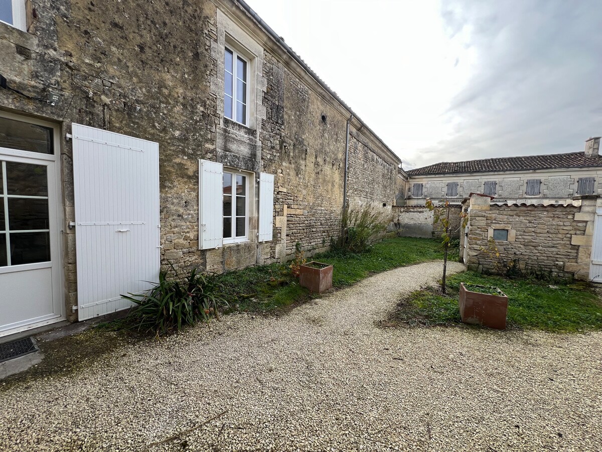Casa de Charente Renovar2019 en propiedad vinícola productor de pineau ,coñac. La casa se encuentra a 100 m de la Nationa141 eje principal Saintes Cognac. La Charente para la pesca 1 km5 ,vía verde flowvél accesible en verano por bandeja de cadena para cruzar la charente Pueblo clasificar piedra y agua saint salvan, paleosita5 km,escalada ablaye de fontdouce 7 km santas ciudad galo romana,Cognac visita a las grandes casas de licores Estación balnearia 55 km Mescher y Royan, La Rochelle 70 km
