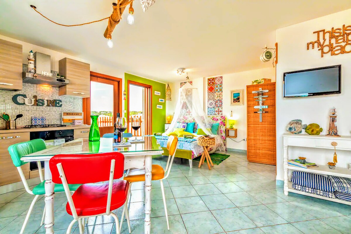 Una terraza panorámica con impresionantes vistas de la costa jónica desde Gallipoli a Santa Caterina será el marco de las vacaciones de quienes decidan alojarse en nuestro ático, en Santa Maria al Bagno, ¡la perla del Salento! El loft, cuidado al detalle, es un rincón del paraíso en contacto con la belleza natural típica del paisaje de Salento. ¡Será encantador vivirlo en cualquier época del año!