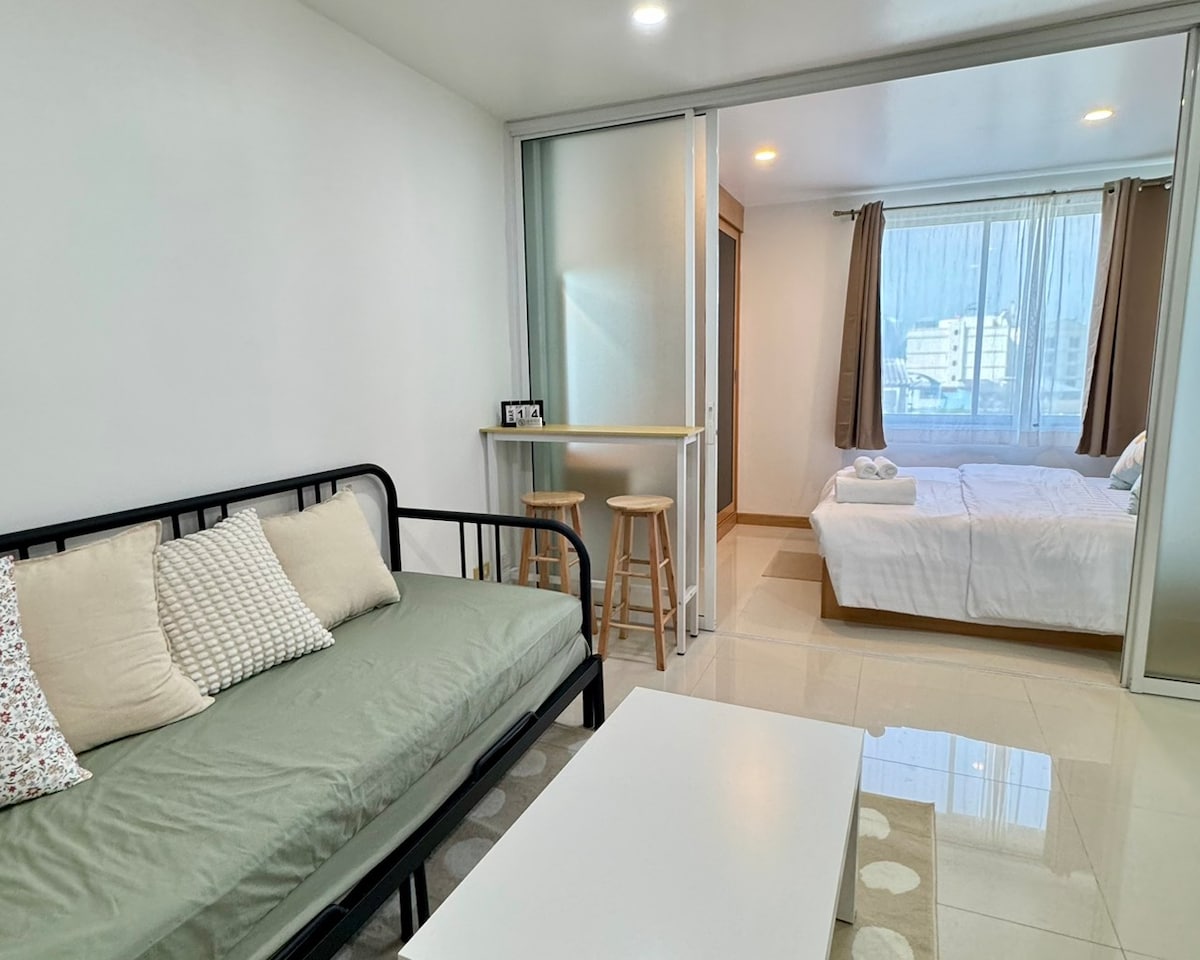 Aspectos destacados de la propiedad Espacio cómodo: 1 dormitorio 1 baño (sofá/sala de estar/mesa de comedor), fácil de acomodar a 2 adultos. Ubicación privilegiada Centro de transporte 1. A solo 300 metros de la estación BTS On Nut (3-5 minutos a pie), acceso directo al centro de la ciudad: 2.1 estaciones al distrito de negocios de Siam (Siam Paragon/MBK/CentralWorld/Siam Square) Acceso directo a Nana Square, centro comercial T21, Four Faced Buddha, centro comercial EM, centro comercial Gateway, terminal de autobuses Ekkamai, Central Embassy 3. Traslado de BTS a MRT, acceso rápido al mercado nocturno del tren 4. Conveniente para conducir: a 200 metros de la entrada de la autopista, a 500 metros de la salida de la autopista (salida On Nut) Instalaciones de vida (a poca distancia) Comedor: 7-11 abajo, cafetería, bufé Best Beef (junto a la casa) Supermercado: Lotus Supermarket (300 m), Big C Supermarket (500 m) Entretenimiento: rodeado de una amplia variedad de restaurantes y locales de vida nocturna. Transporte conveniente e instalaciones de vida todo en uno para satisfacer las necesidades de viajes de negocios y vacaciones de placer, ¡es una base ideal para explorar Bangkok!