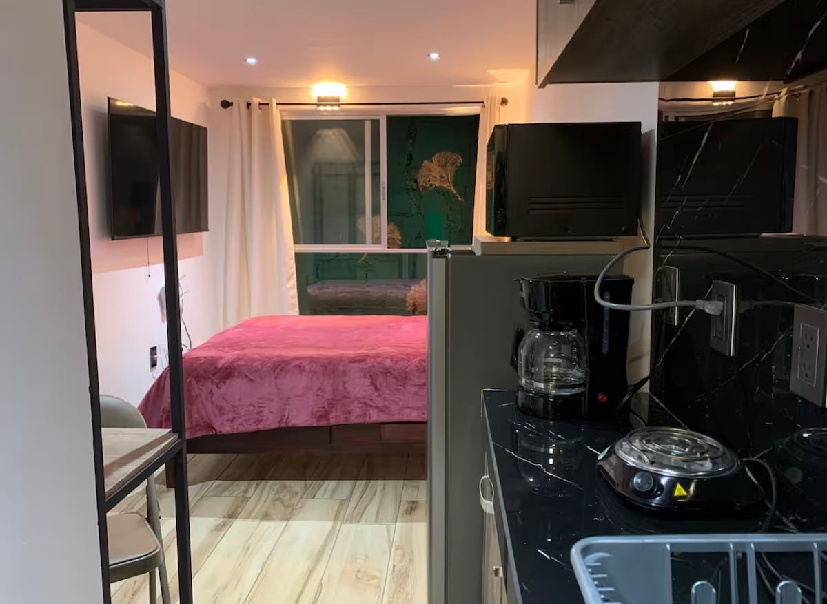 ¡Bienvenido a nuestro perfectamente ubicado apartamento en la Ciudad de México! Este encantador espacio estilo cabaña fusiona el encanto vintage con comodidades modernas. Con una habitación ultra acogedora, cocina completa, sala, comedor y una pequeña terraza exterior disfruta de la tranquilidad y la belleza de las paredes de vitral en medio de la vibrante Ciudad de México. Además aprovecha su conveniente cercanía al metro y el Parque Bicentenario.