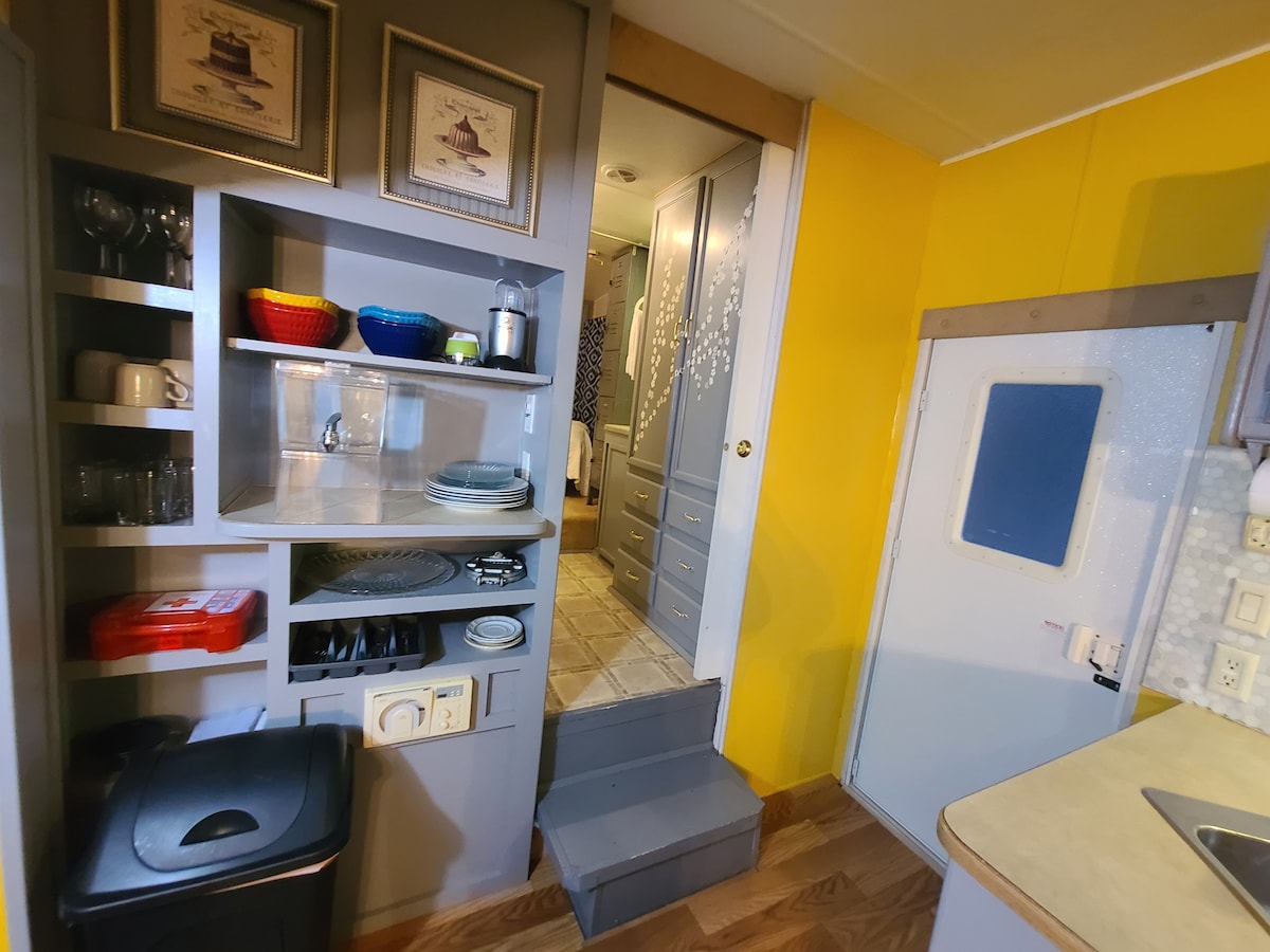 ¡Ideal para una escapada única en un PARQUE de autocaravanas! También conocido como "glamping" en estos días. Hermosa casa rodante acogedora de 19 pies con todos los servicios que buscas. Refrigerador de tamaño completo, altavoces interiores/exteriores, sonido envolvente, lavadero, piscina. ¡Comunidad cerrada! Localizado en un vecindario privado amistoso del RV solamente 10 minutos de la zona céntrica SA y del distrito histórico de The Pearl. Todo el acceso a la autopista US-90, I-35 , US-281 e I-10. 15 minutos del aeropuerto SATELITAL.