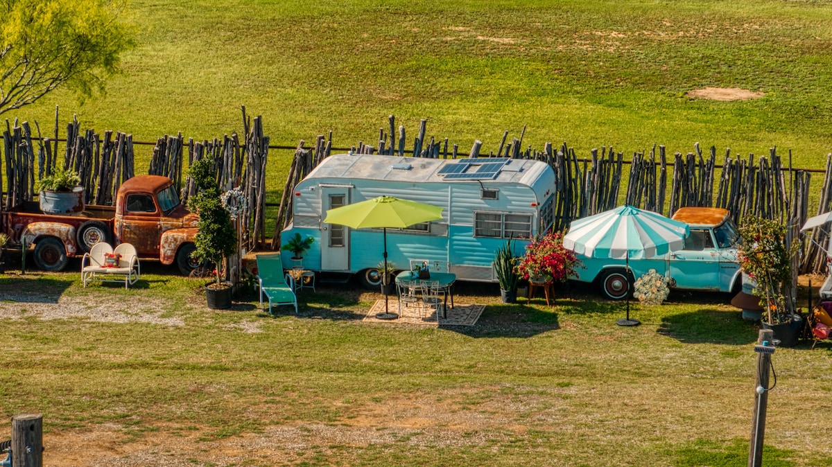 Escápate a nuestra caravana vintage Avion LaGrande de 1972, escondida en un bosque de 5 acres cerca de New Braunfels. Este refugio boho-chic cuenta con un patio iluminado con luces de hadas, cómodas tumbonas, una chimenea/parrilla, un sendero natural y una casa del árbol. A pocos minutos de Wurstfest, Schlitterbahn, el histórico Gruene y aventuras fluviales, es la mezcla perfecta de relajación y acceso a las atracciones locales. Tablas de remo y kayaks para niños en alquiler: ¡25 dólares cada uno por estancia! La propiedad se comparte con un alquiler de tiendas de campaña glamping.