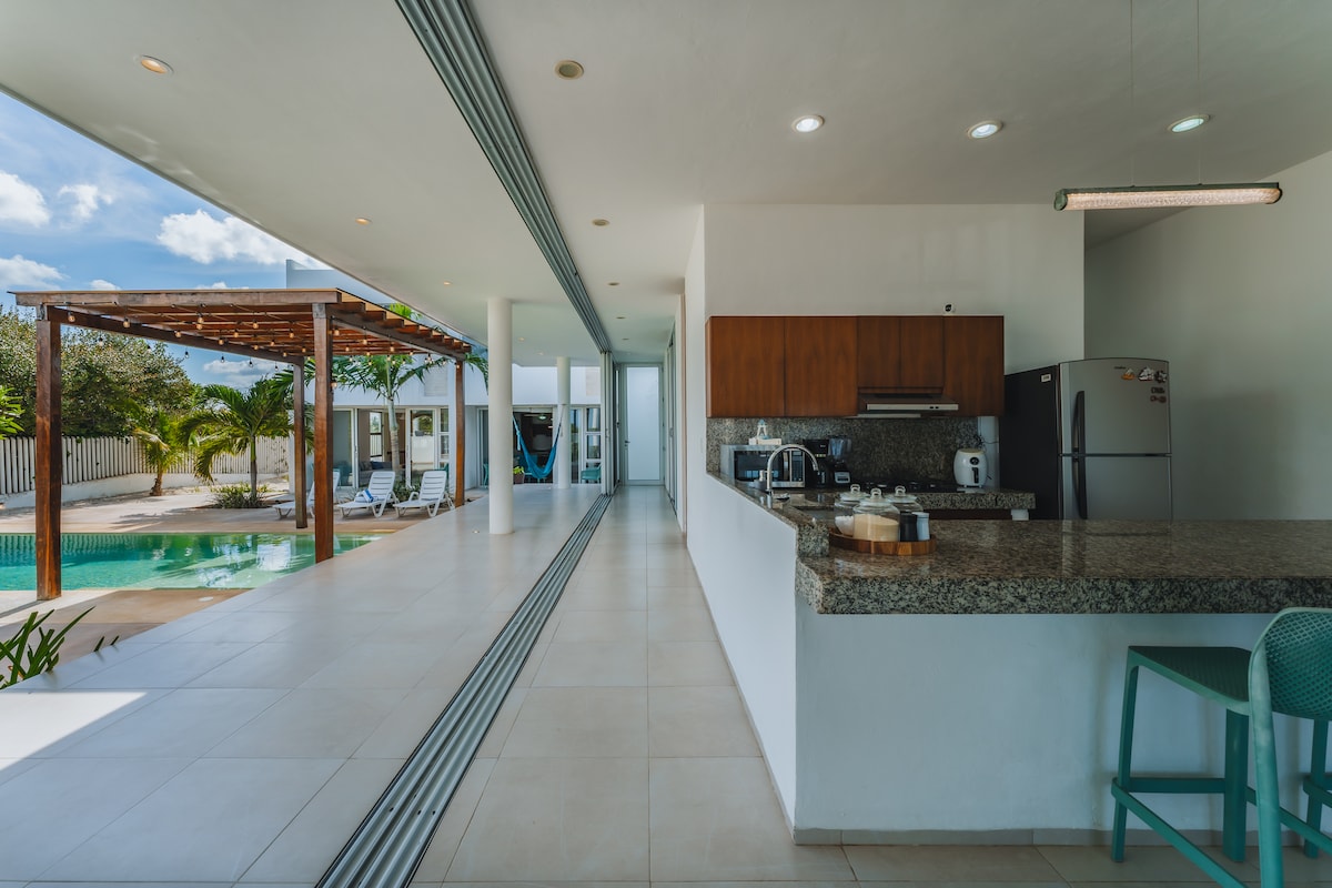 Casa María es una casa privada con alberca privada, ideal para quienes buscan descanso y privacidad en un ambiente tranquilo, sin compartir espacios. Ubicada a 3 cuadras del mar de Telchac Puerto y cerca del centro, restaurantes y clubes de playa. Cuenta con alberca, bar, área de grill, hamaca, regadera exterior, roof top con vista al mar, habitación, cocina equipada y baño completo. Un espacio tranquilo para disfrutar Telchac a tu ritmo.