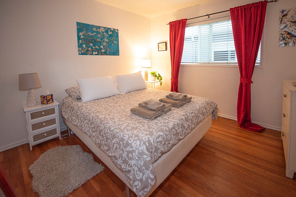 ¡Te damos la bienvenida a tu acogedora estancia en Santa Mónica! Luminoso, espacioso y moderno, una cama/un baño en el corazón del centro de Santa Mónica. Tu hogar lejos de casa está a solo un corto y hermoso paseo del muelle, la playa, Third Street Promenade y Santa Monica Place. Ya sea que estés en la ciudad por motivos de trabajo o vacaciones, ¡este espacio es perfecto! Disfruta de un balcón privado, una cómoda cama tamaño queen con sábanas de estilo hotelero, conexión Wi-Fi rápida, cocina equipada, baño completo, llegada autónoma fácil y estacionamiento para tu comodidad.