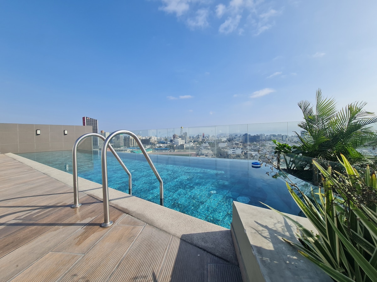 Descubre este lindo apartamento en San Isidro, cerca del centro empresarial y rodeado de tiendas, restaurantes y centros comerciales. Nuestro alojamiento es perfecto para 2-4 huéspedes. Disfruta de la piscina y jacuzzi en el rooftop con vistas impresionantes, gimnasio equipado, zona de parrillas y gamezone. Todo esto en un edificio seguro y bien ubicado. ¡Una experiencia única en Lima! Ideal para viajeros de negocios y familias.